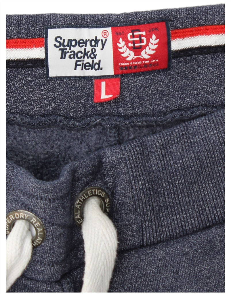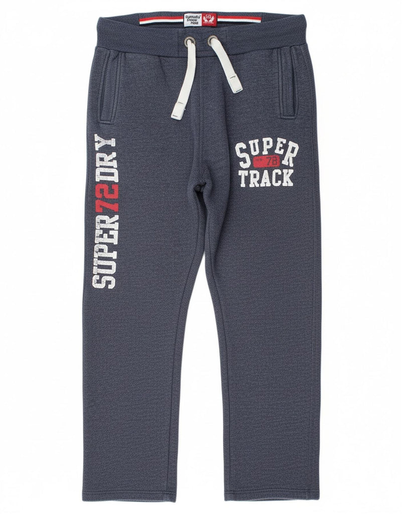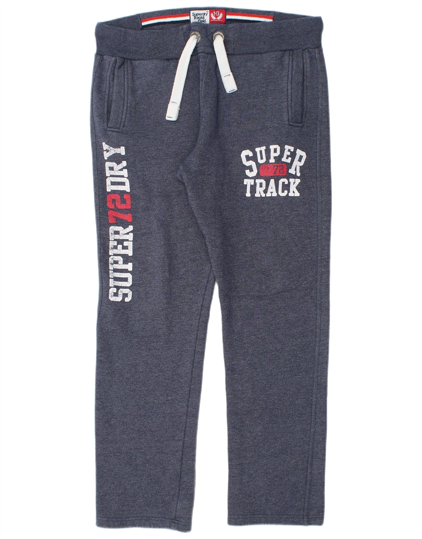 SUPERDRY Mens Graphic Tracksuit Trousers Large Navy Blue Cotton