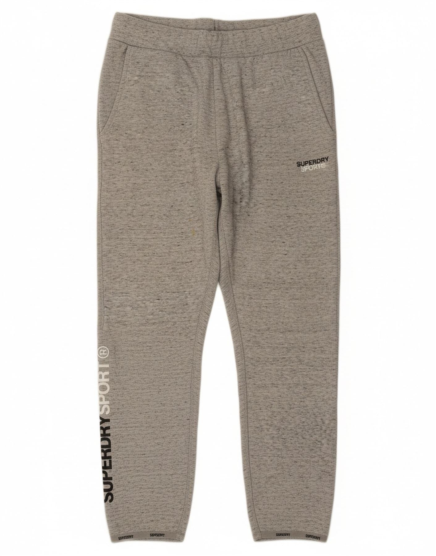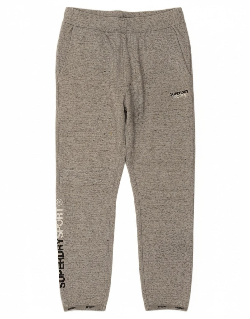 SUPERDRY Mens Graphic Tracksuit Trousers Medium Grey Flecked Cotton