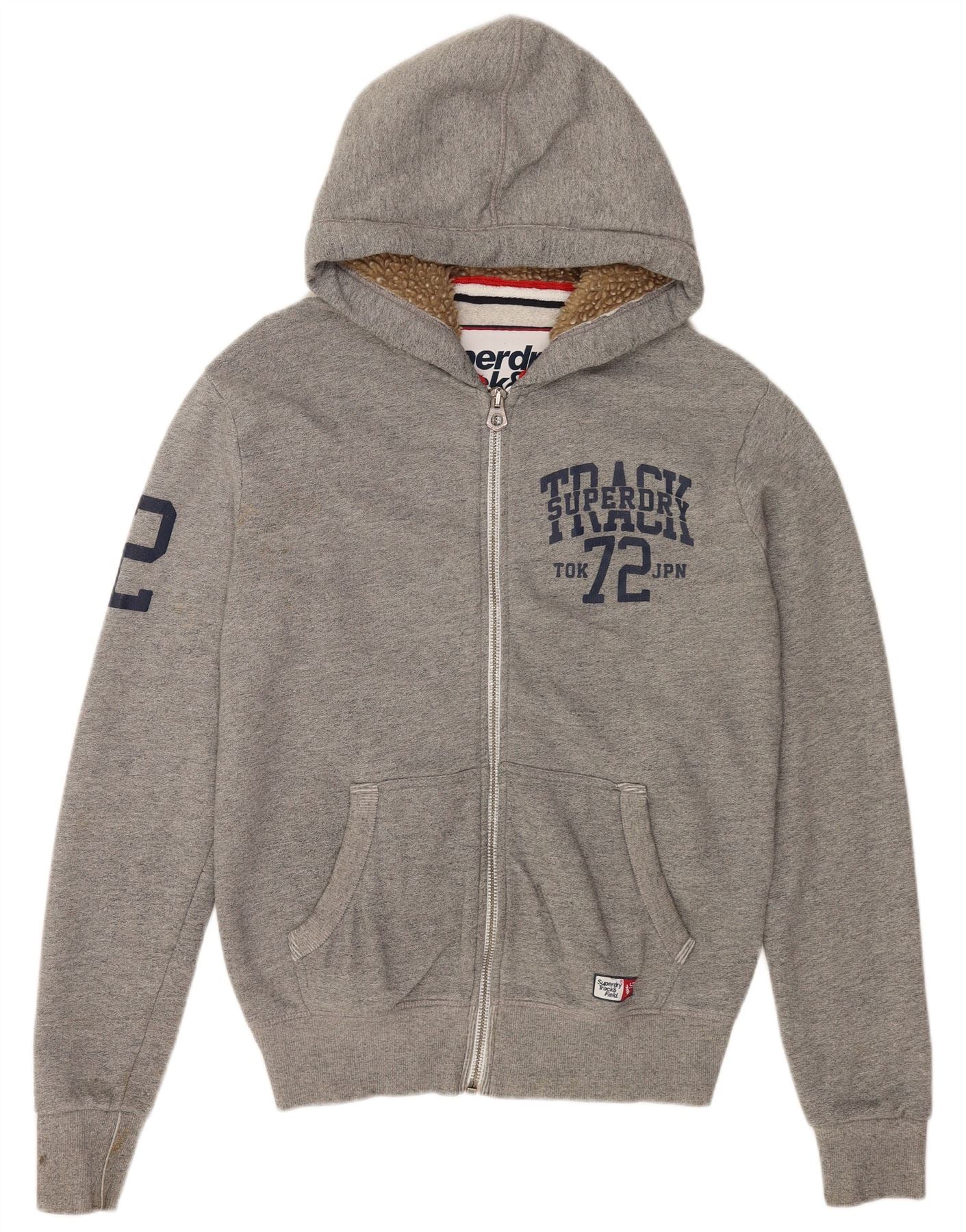 SUPERDRY Mens Graphic Zip Hoodie Sweater Medium Grey Cotton