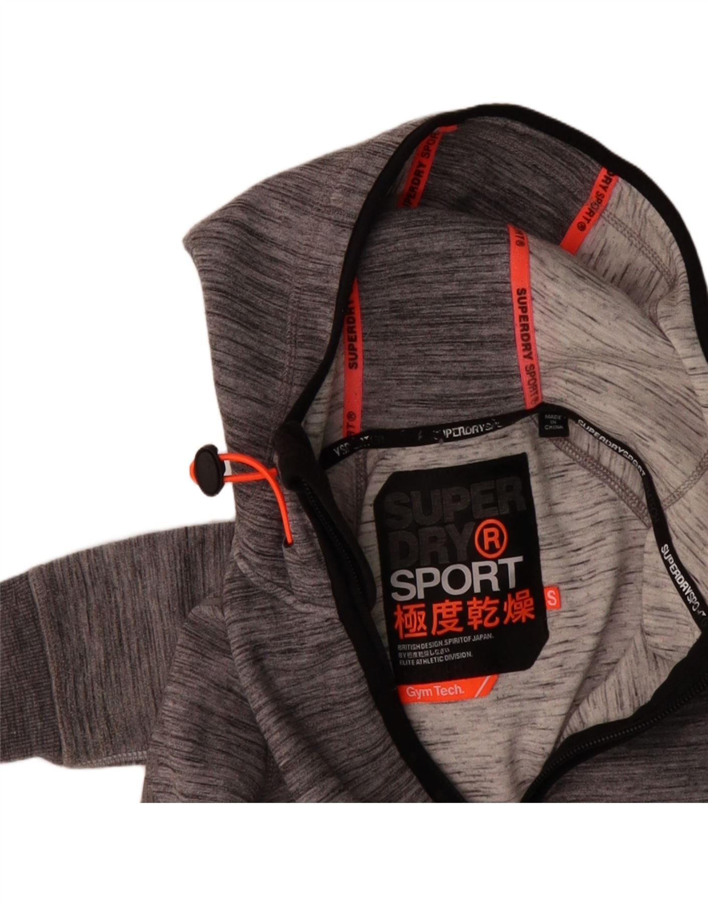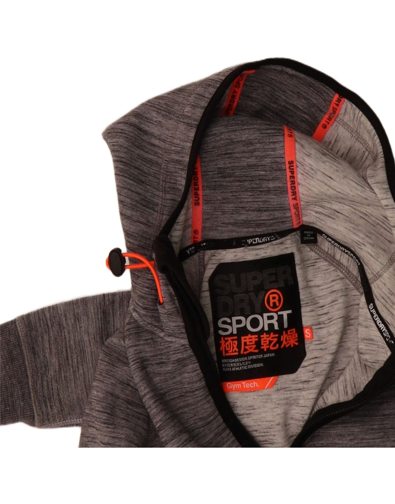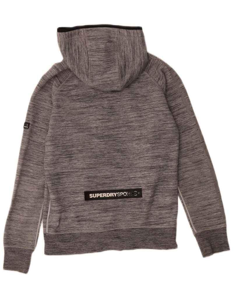 SUPERDRY Mens Graphic Zip Hoodie Sweater Small Grey Flecked Cotton