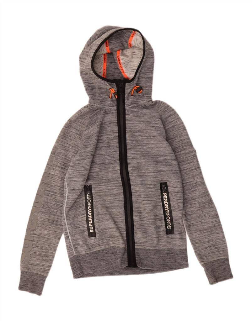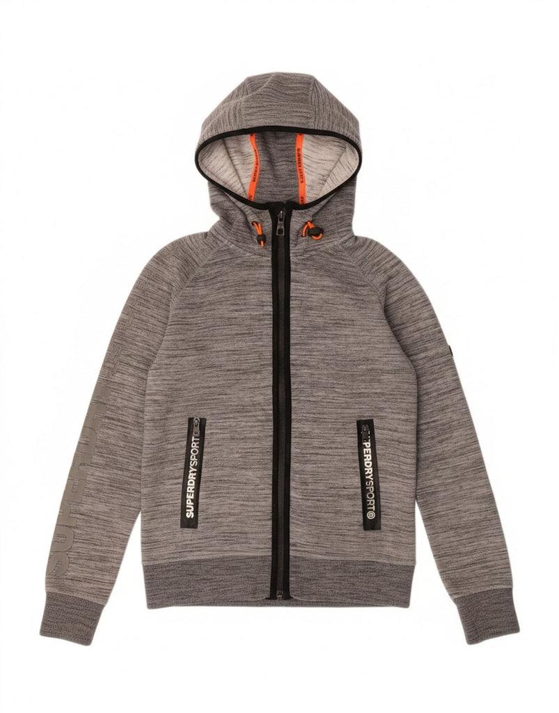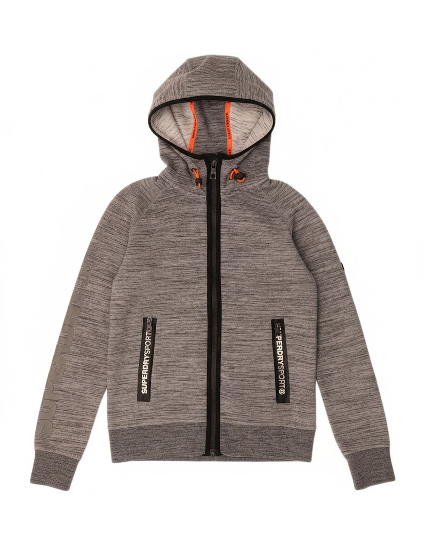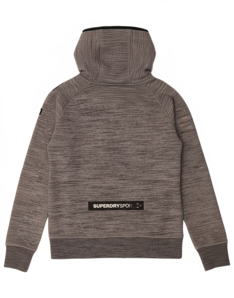 SUPERDRY Mens Graphic Zip Hoodie Sweater Small Grey Flecked Cotton
