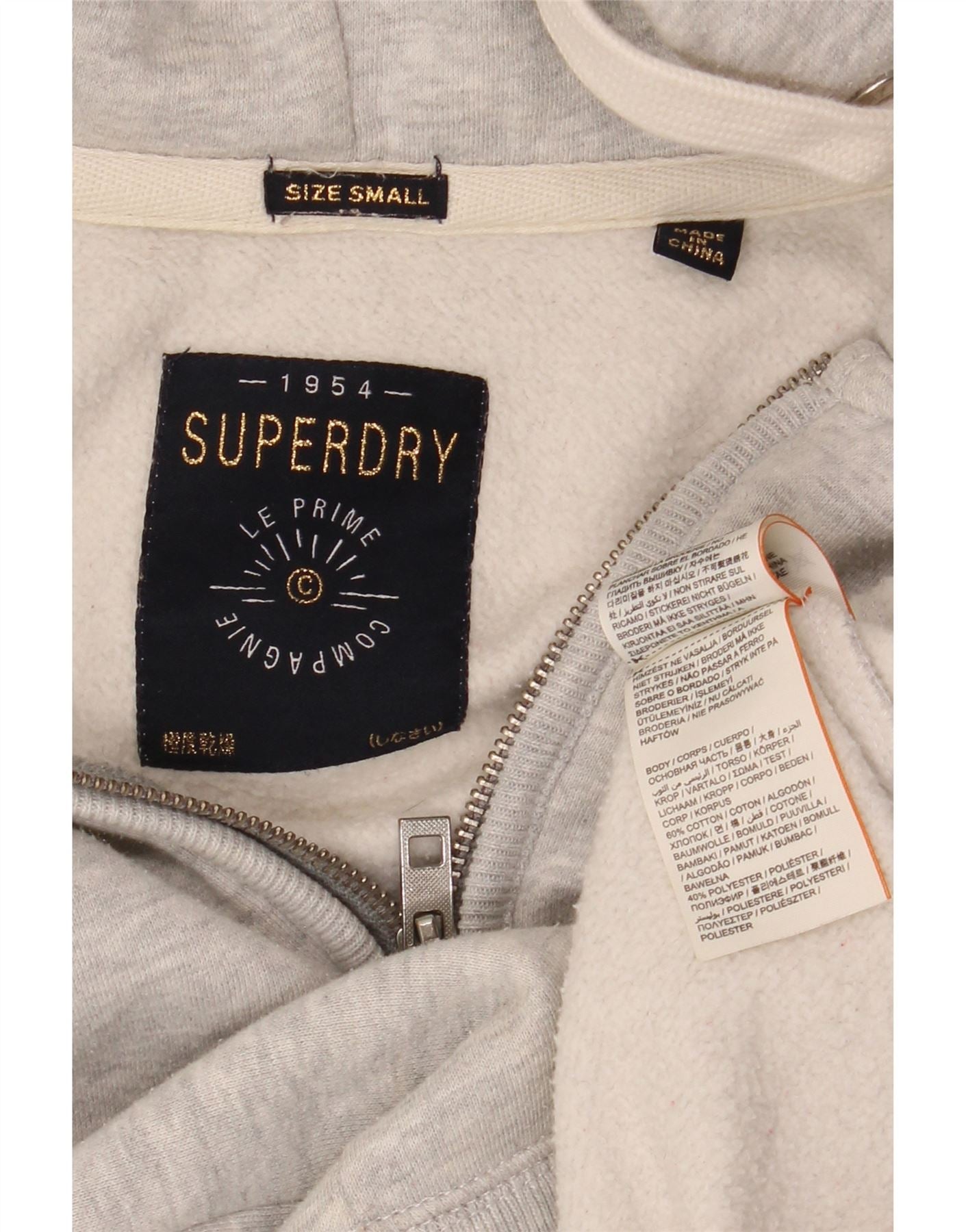 SUPERDRY Mens Graphic Zip Hoodie Sweater Small Grey Flecked Cotton
