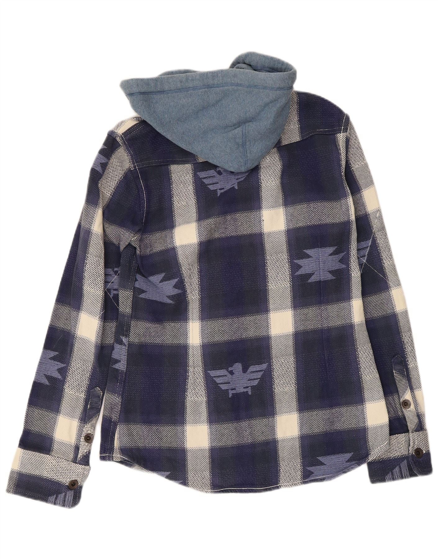 Superdry Mens Hooded Lumberjack Flannel Shirt Medium Blue Plaid Aztec