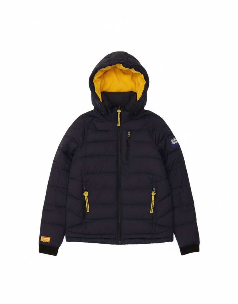 SUPERDRY Mens Hooded Padded Jacket UK 40 Large Navy Blue Nylon