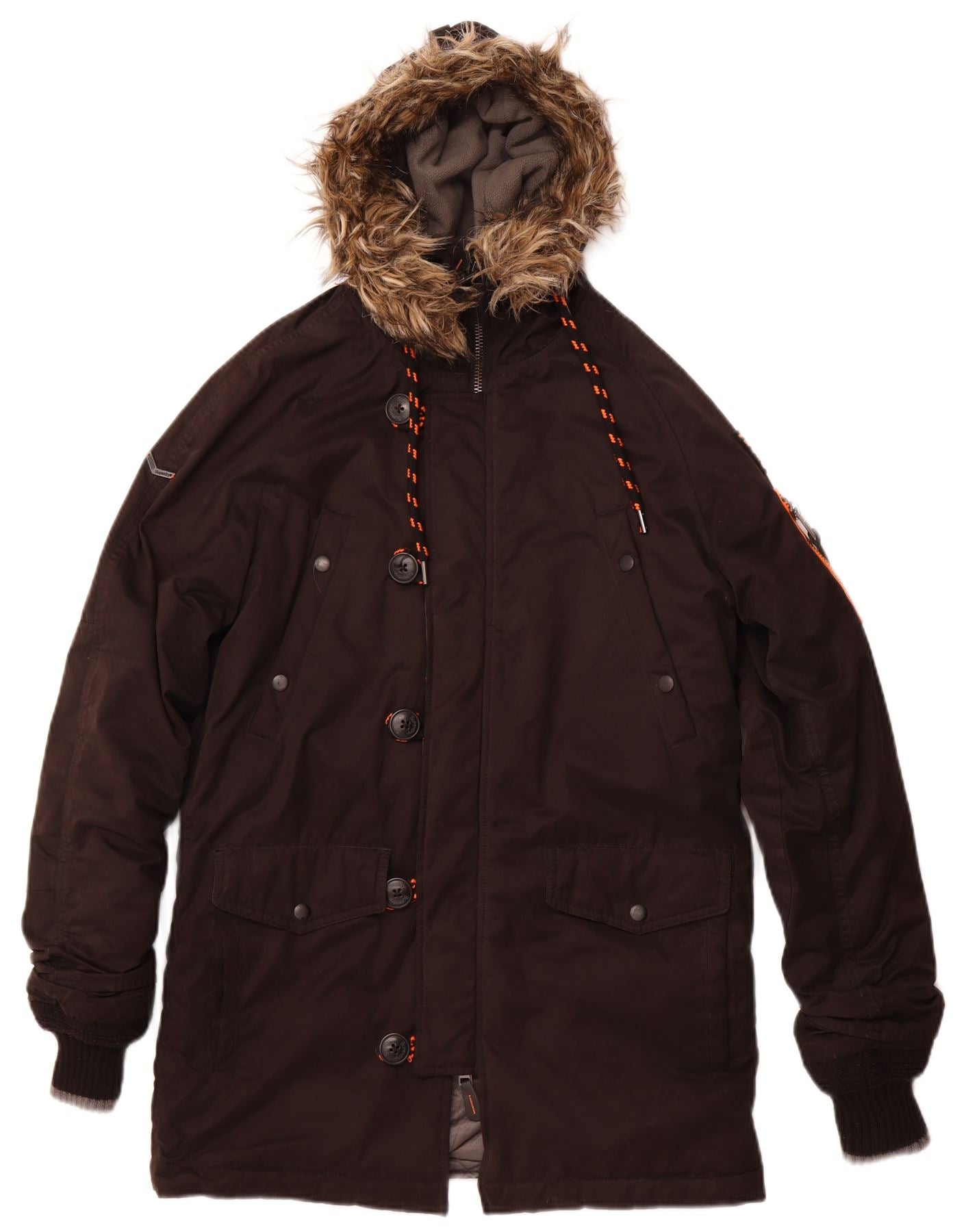 SUPERDRY Mens Hooded Parka Jacket UK 36 Small Black Polyester