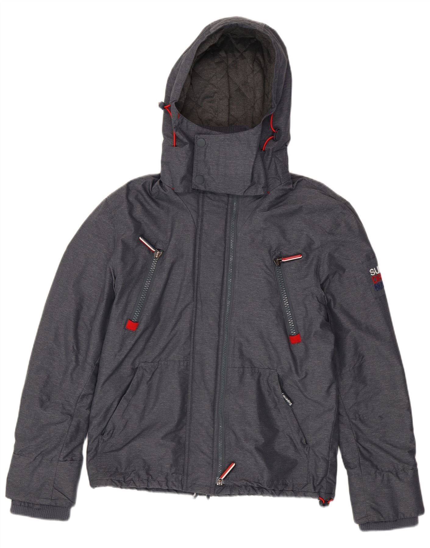 SUPERDRY Mens Hooded Windbreaker Jacket UK 38 Medium Grey Polyester