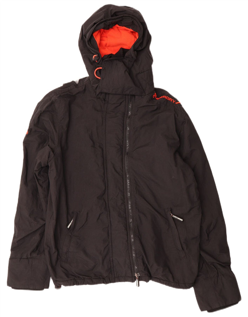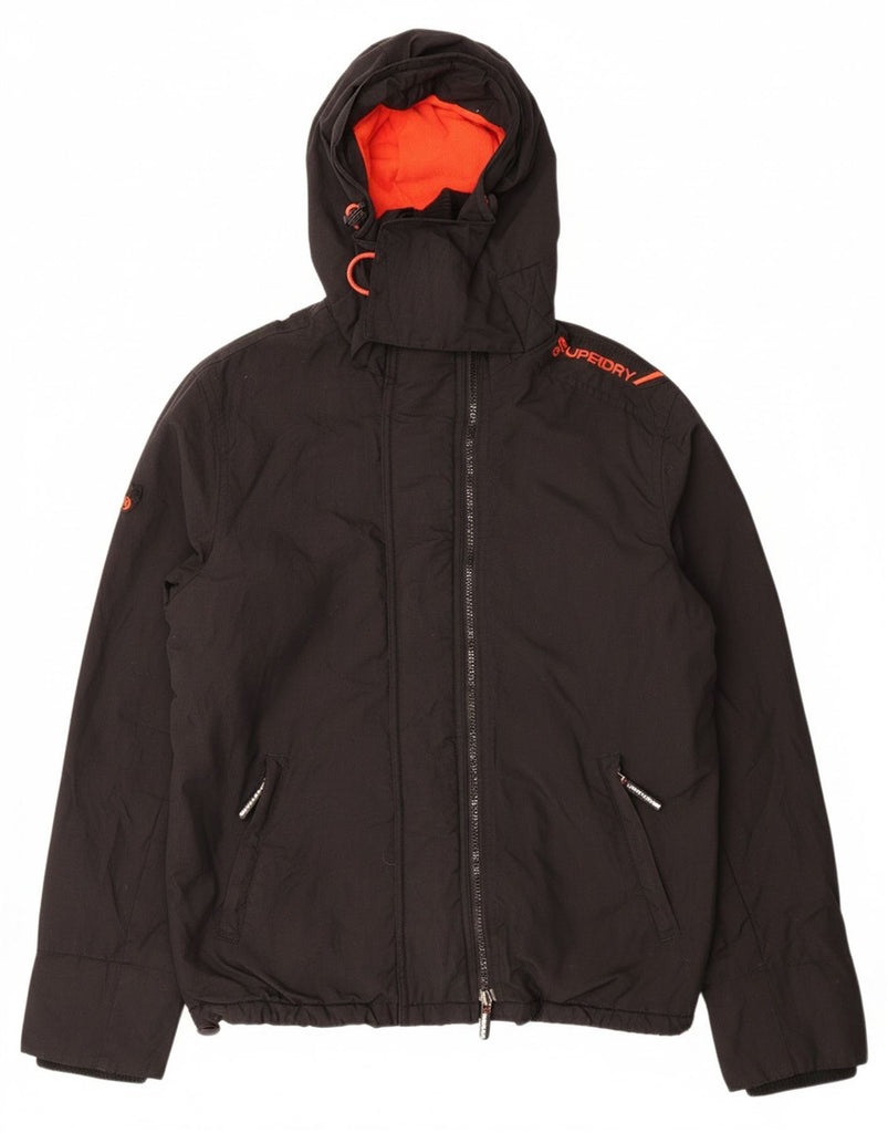 SUPERDRY Mens Hooded Windbreaker Jacket UK 40 Large Black Polyester