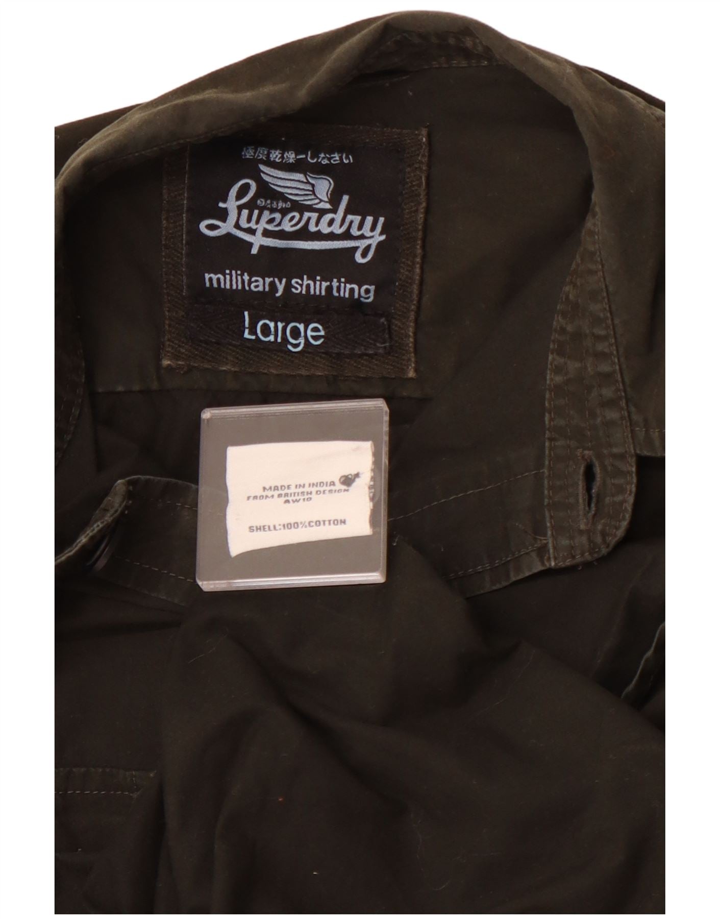 SUPERDRY Mens Military Shirt Large Khaki Cotton