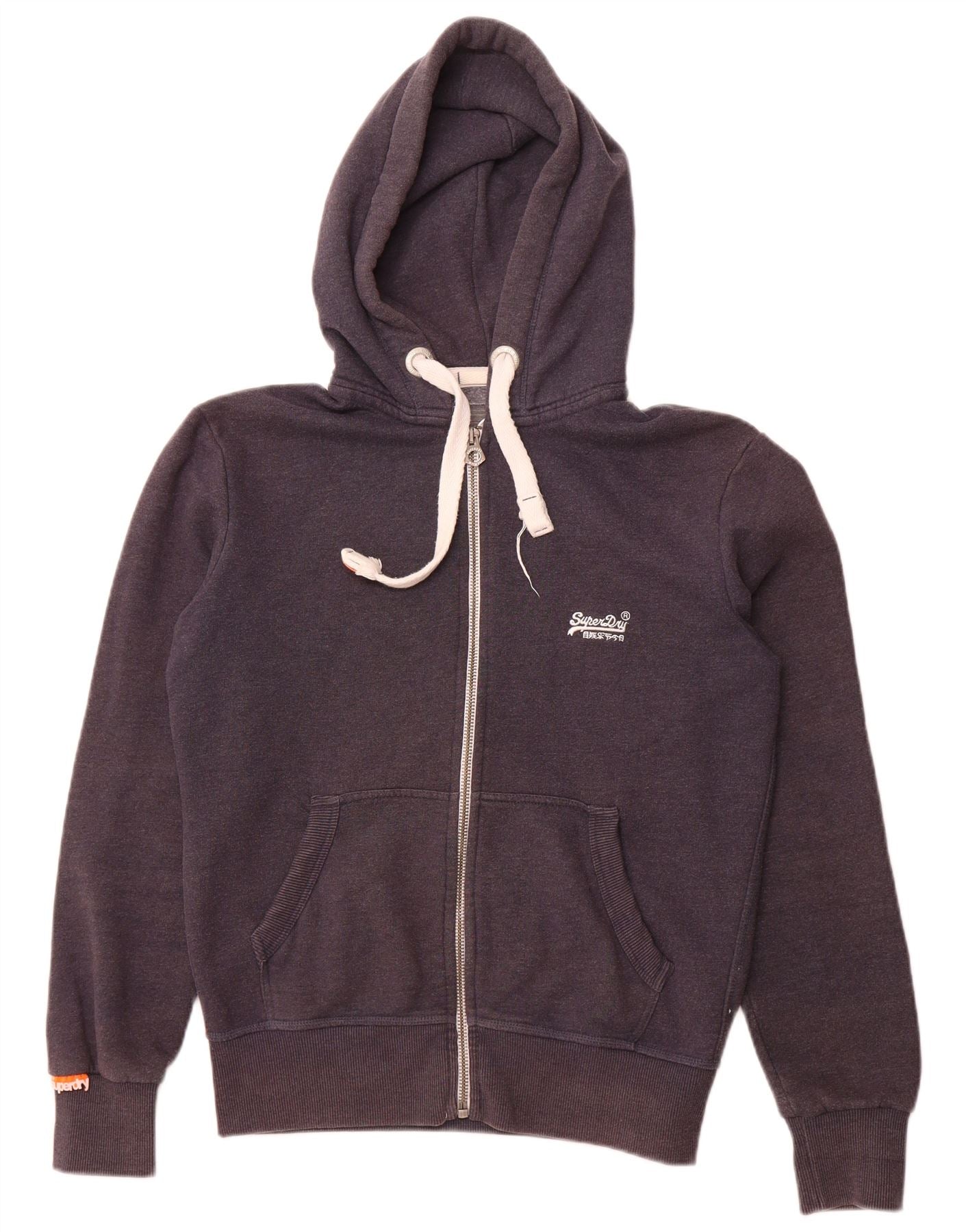 SUPERDRY Mens Orange Label Zip Hoodie Sweater Medium Navy Blue Cotton