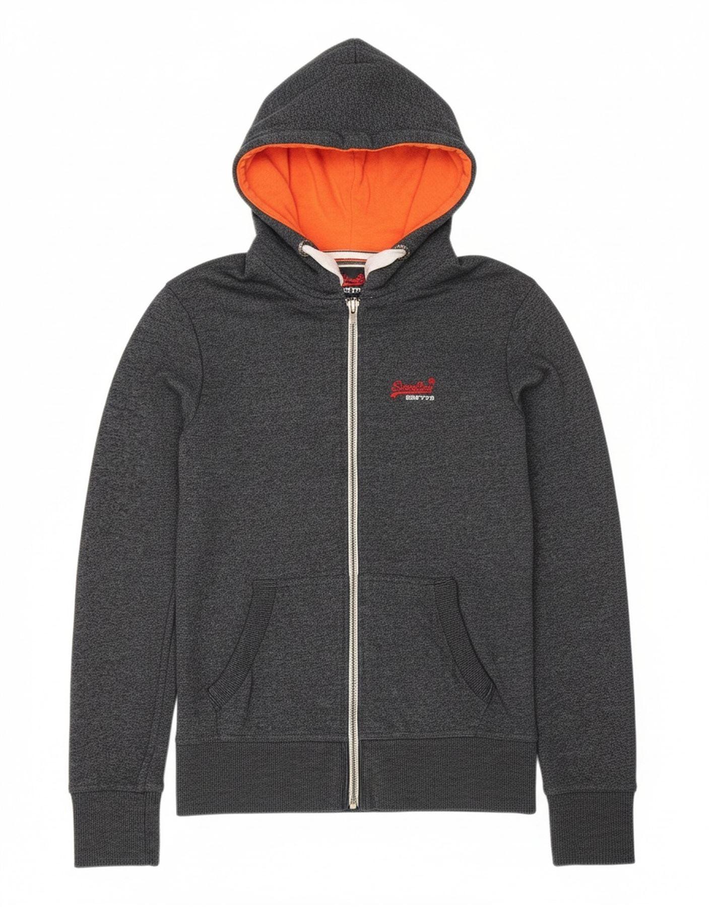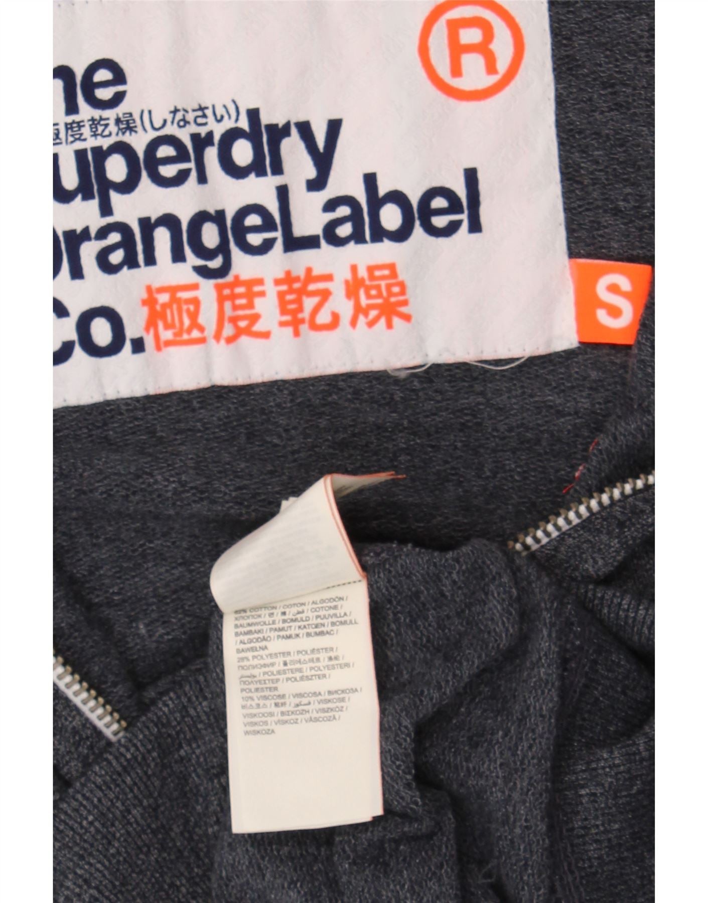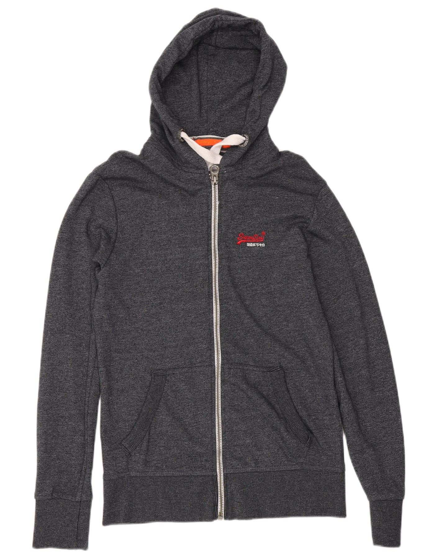 SUPERDRY Mens Orange Label Zip Hoodie Sweater Small Navy Blue Cotton