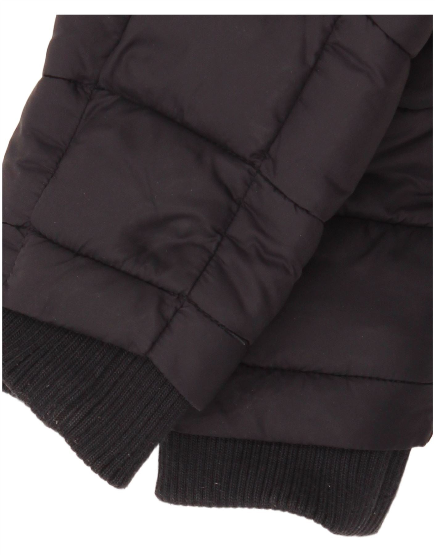 - Condition: Fair Used Condition: the item has been frequently worn and may have numerous flaws - Bpbbling material on cuffs and hem. Missing main zipper.
