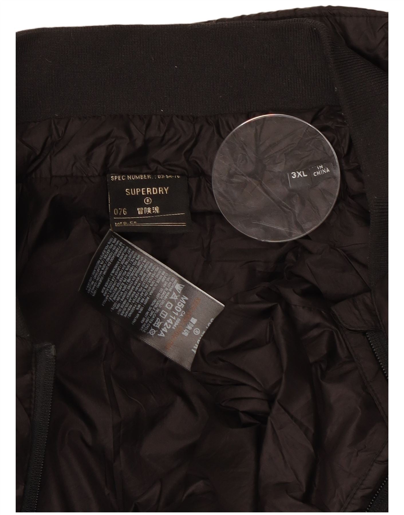 SUPERDRY Mens Padded Jacket UK 46 3XL Black Nylon