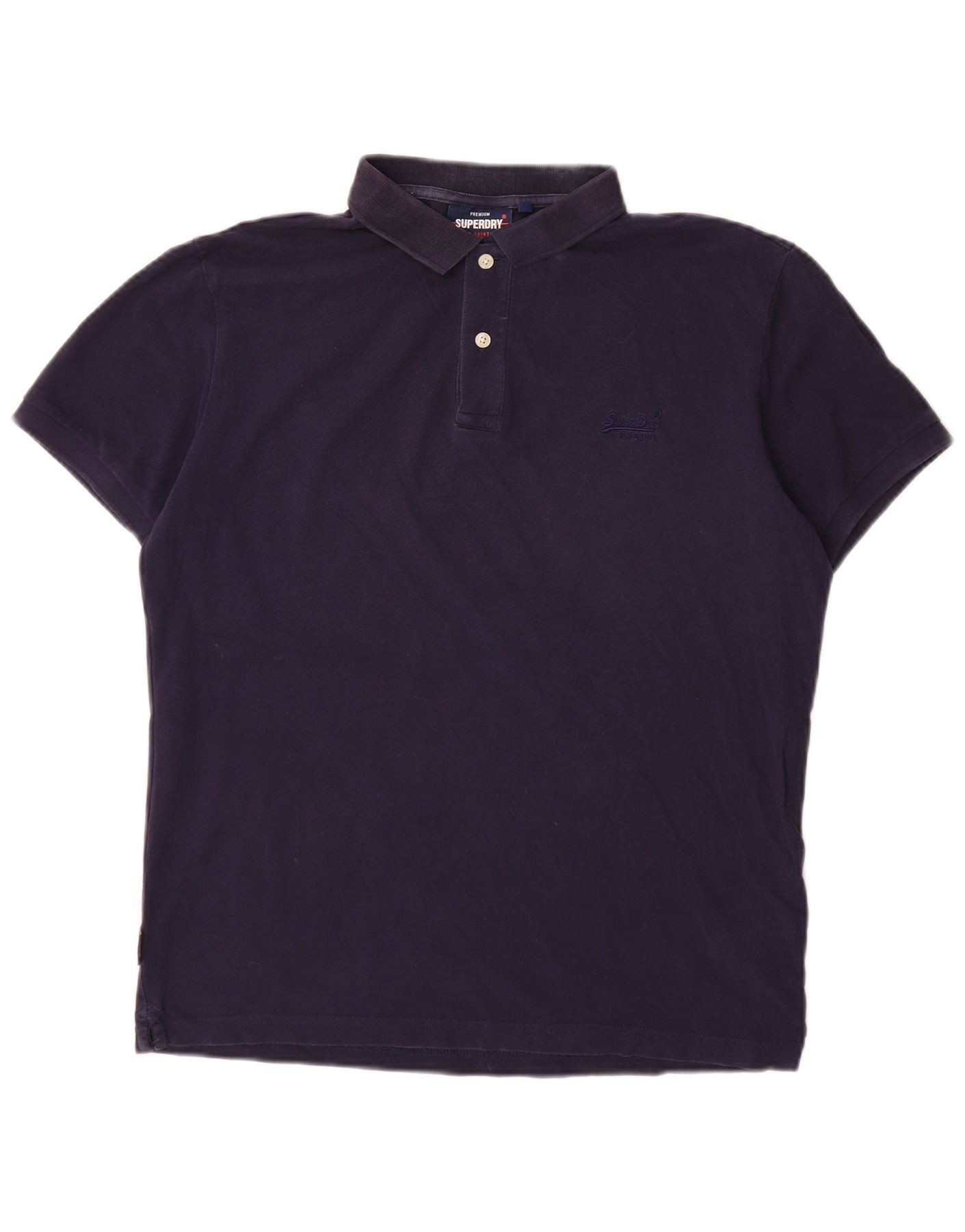 SUPERDRY Mens Polo Shirt Large Navy Blue Cotton