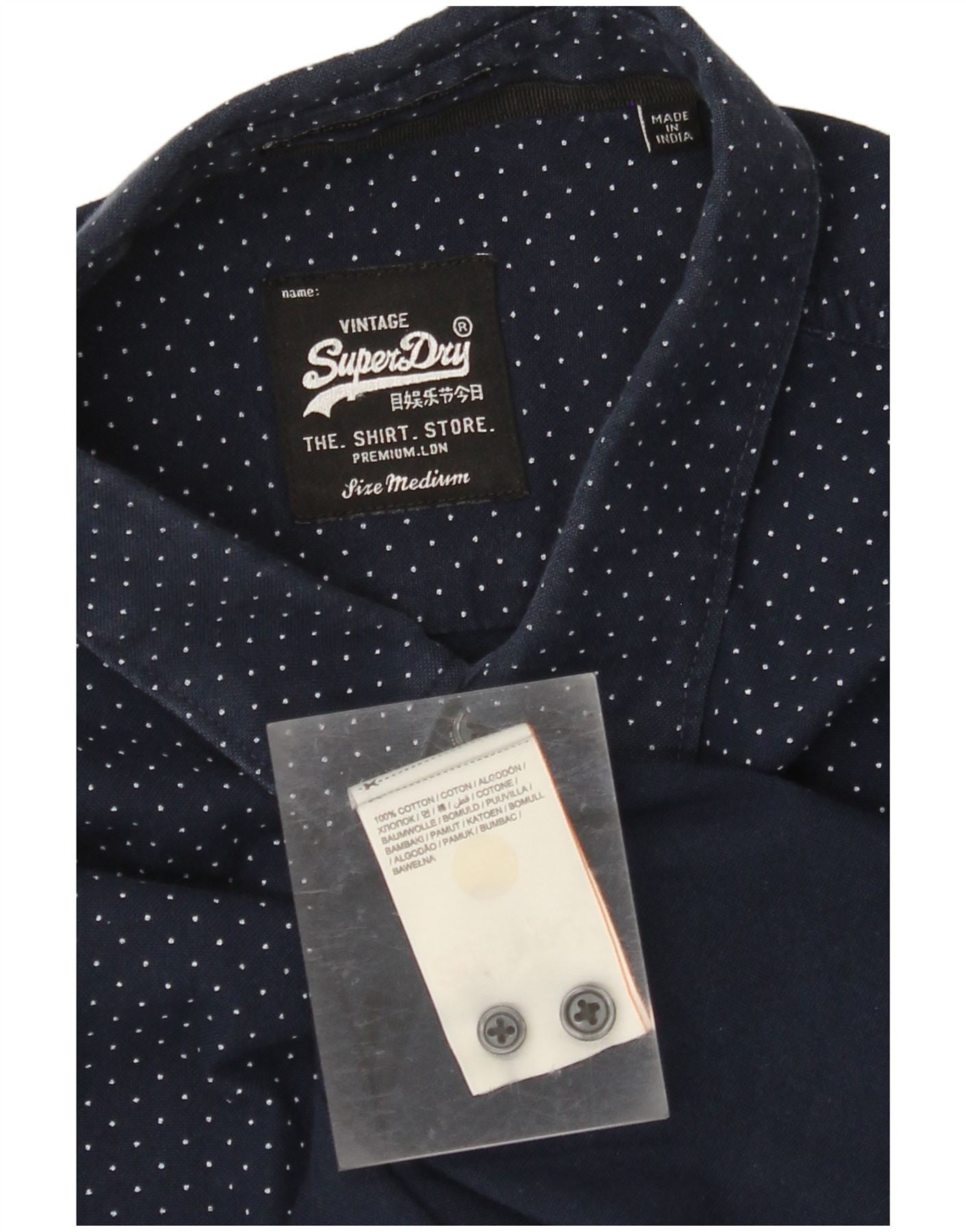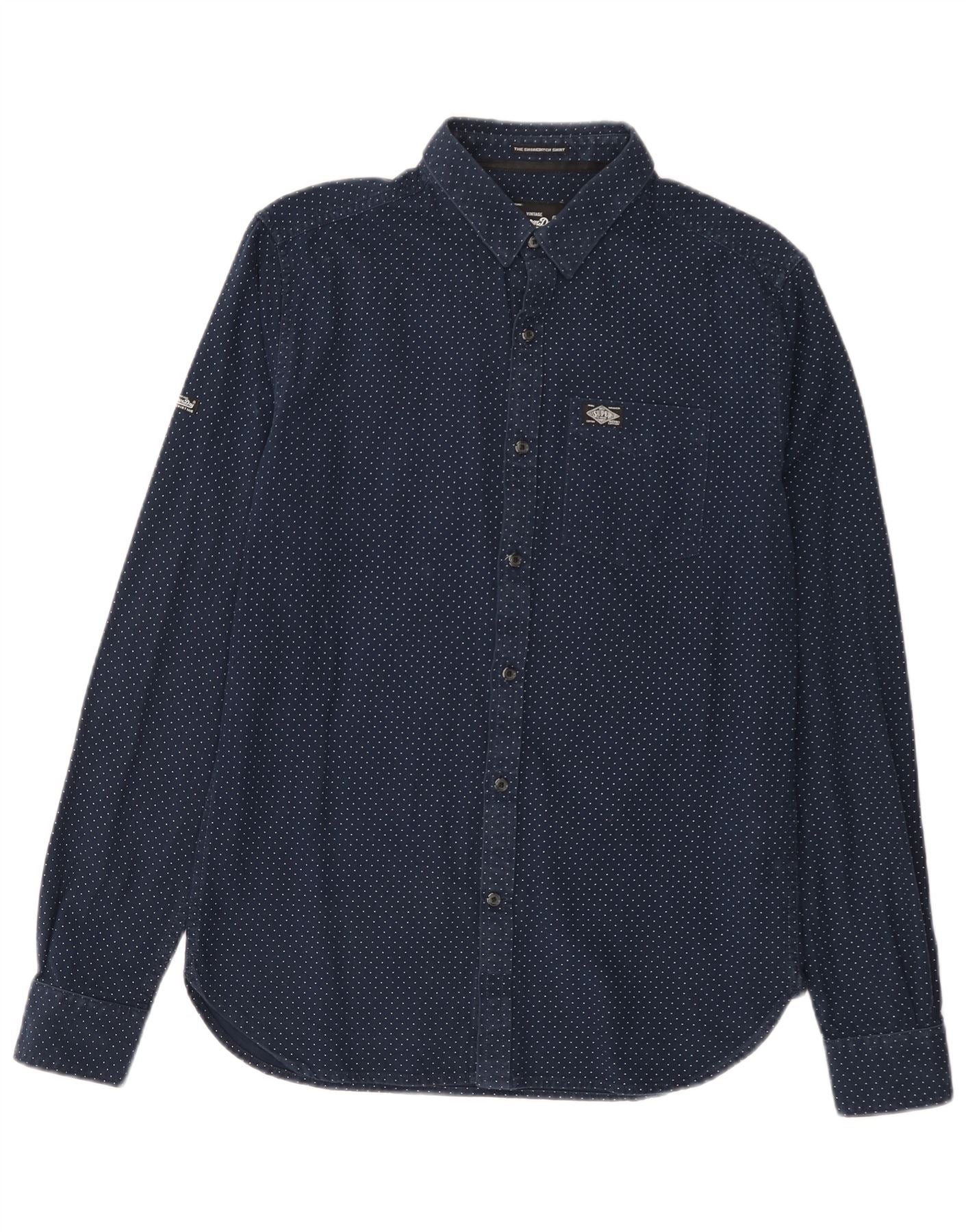 SUPERDRY Mens Shirt Medium Navy Blue Spotted Cotton