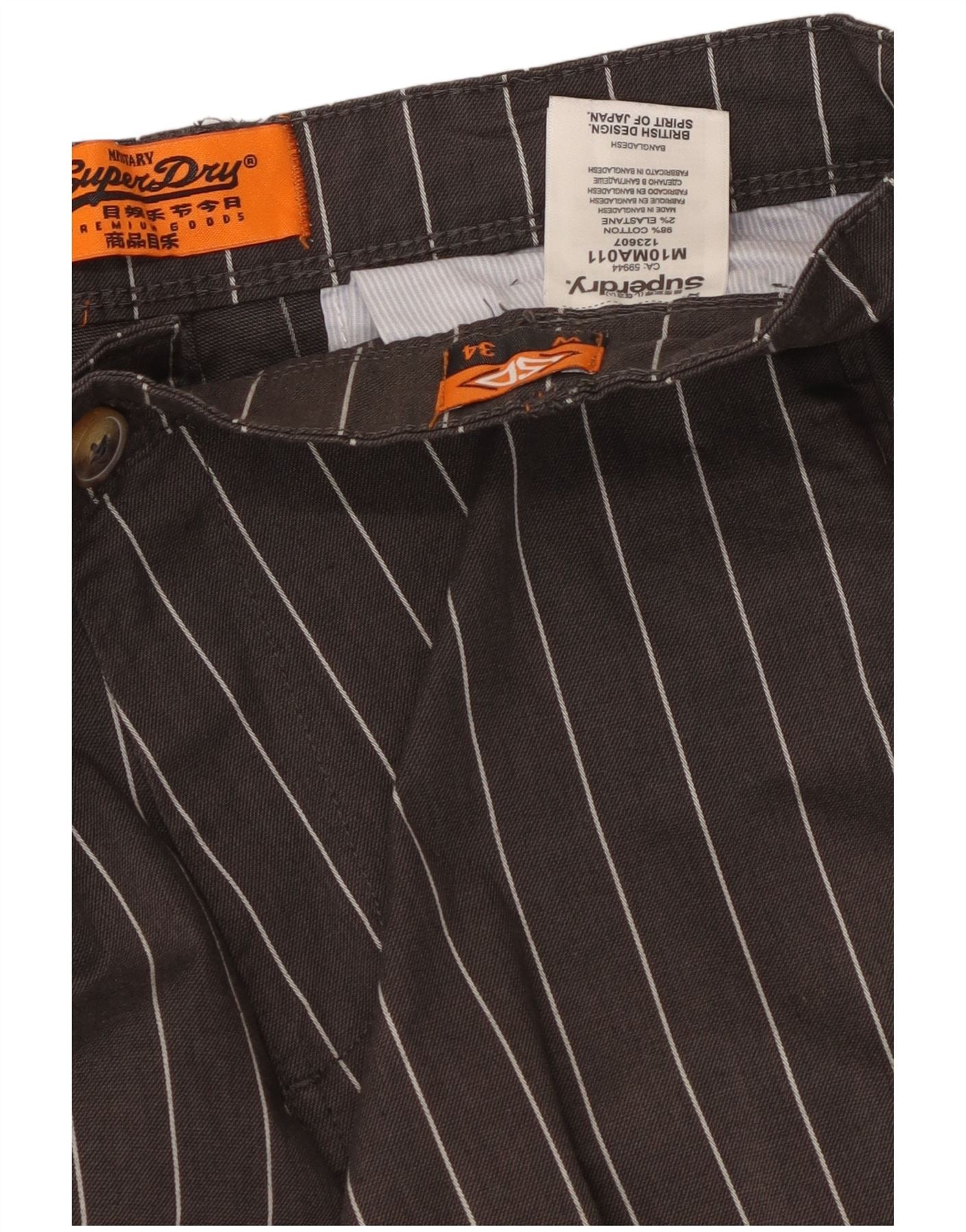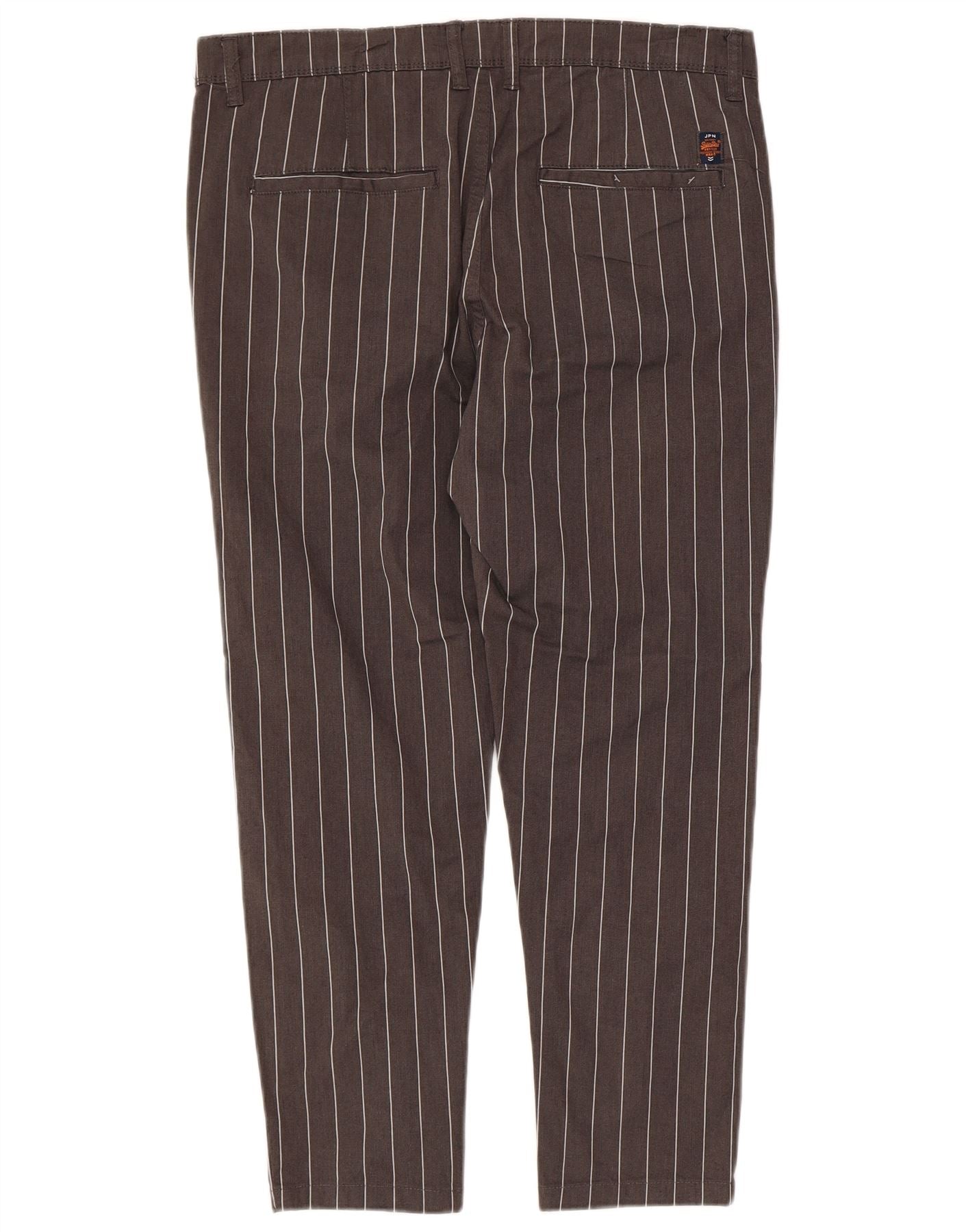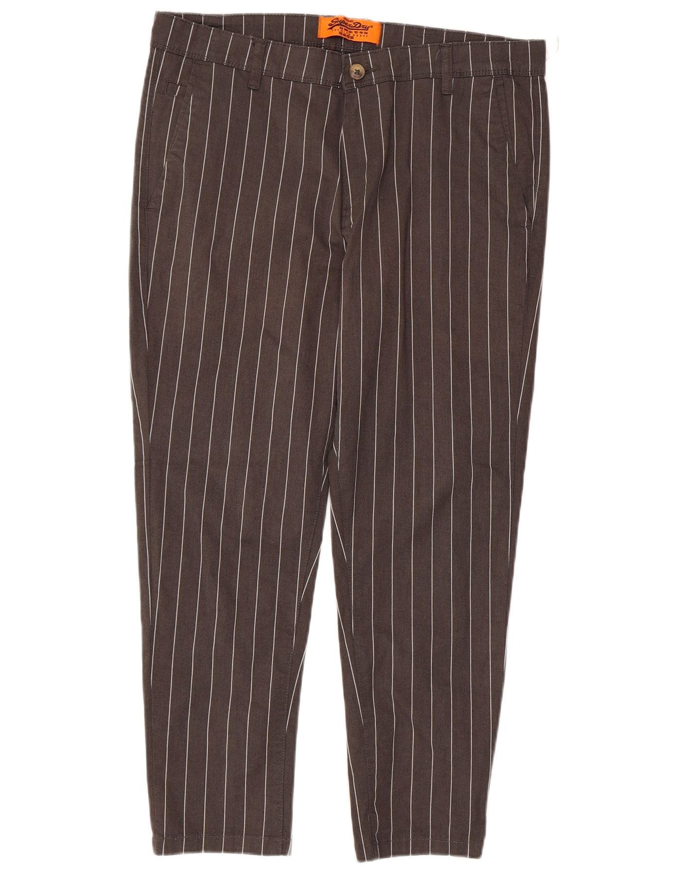 SUPERDRY Mens Slim Cropped Trousers W34 L24 Grey Pinstripe Cotton