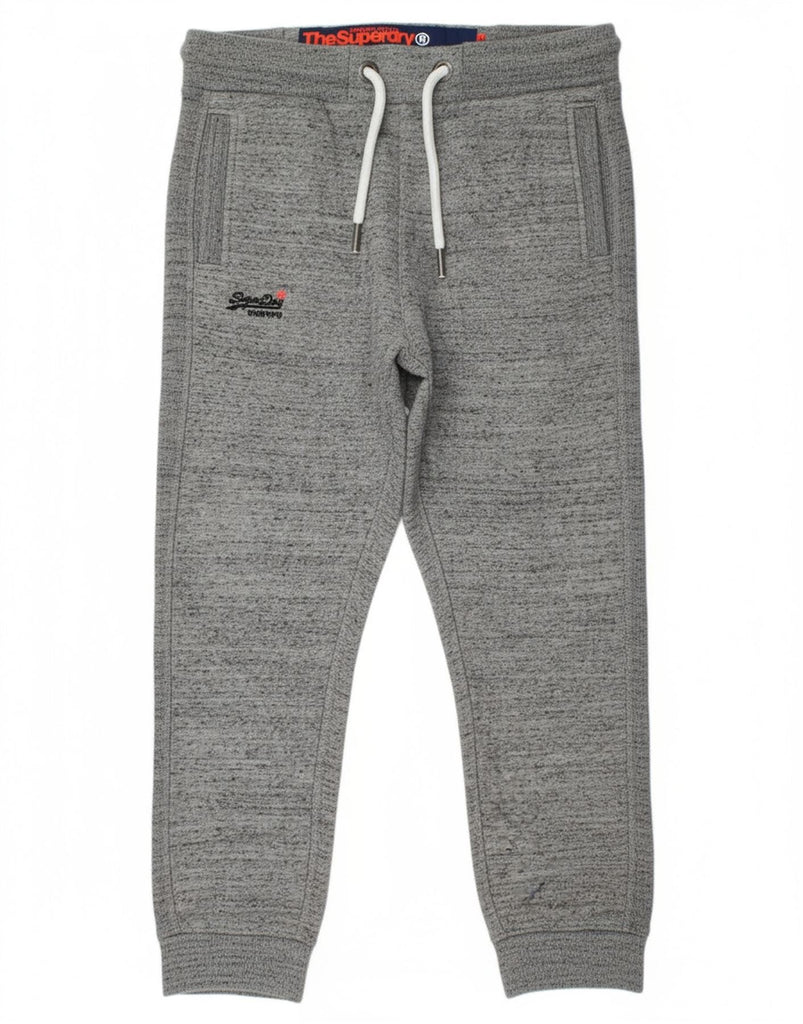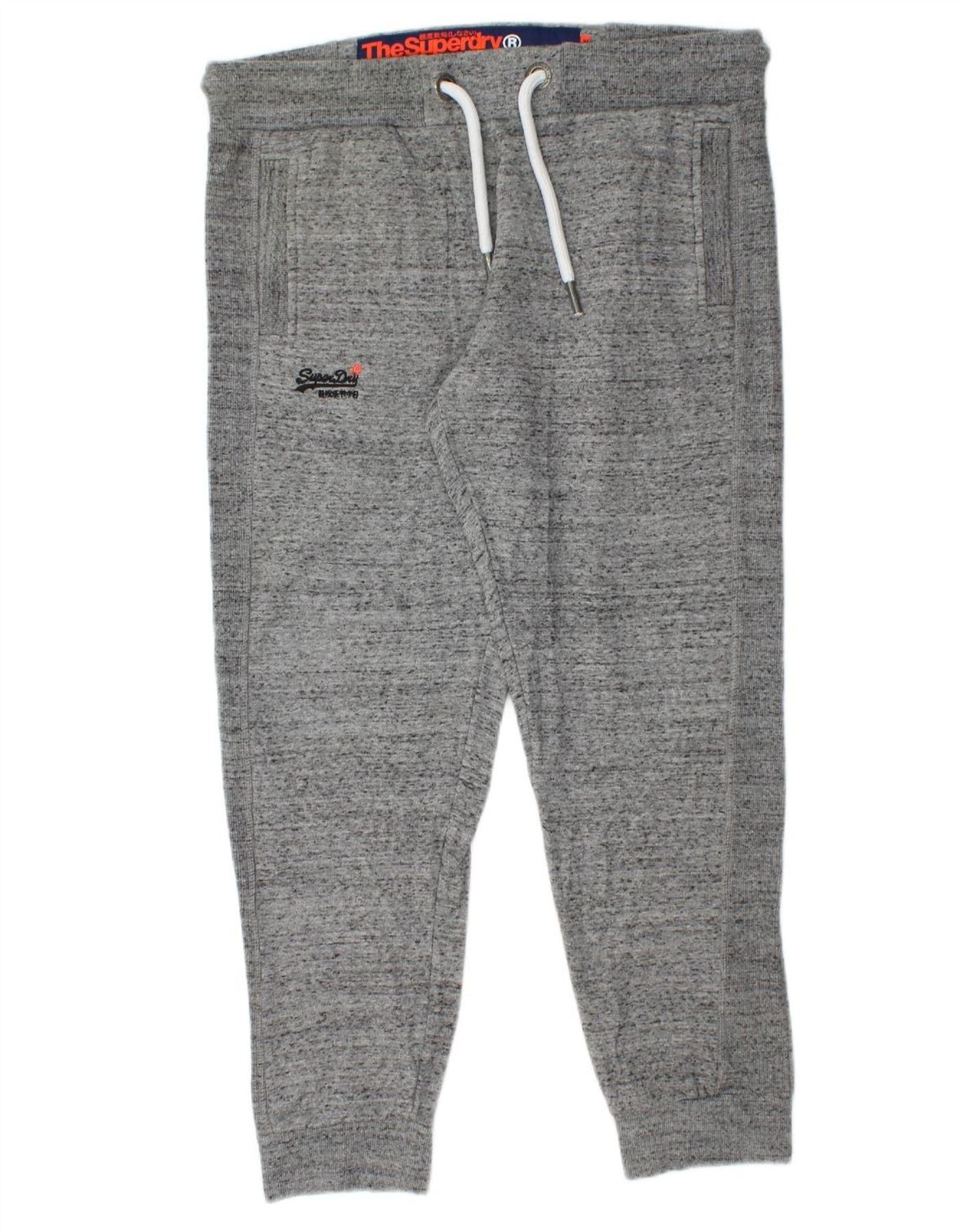 SUPERDRY Mens Slim Fit Tracksuit Trousers Joggers XL Grey Flecked Cotton