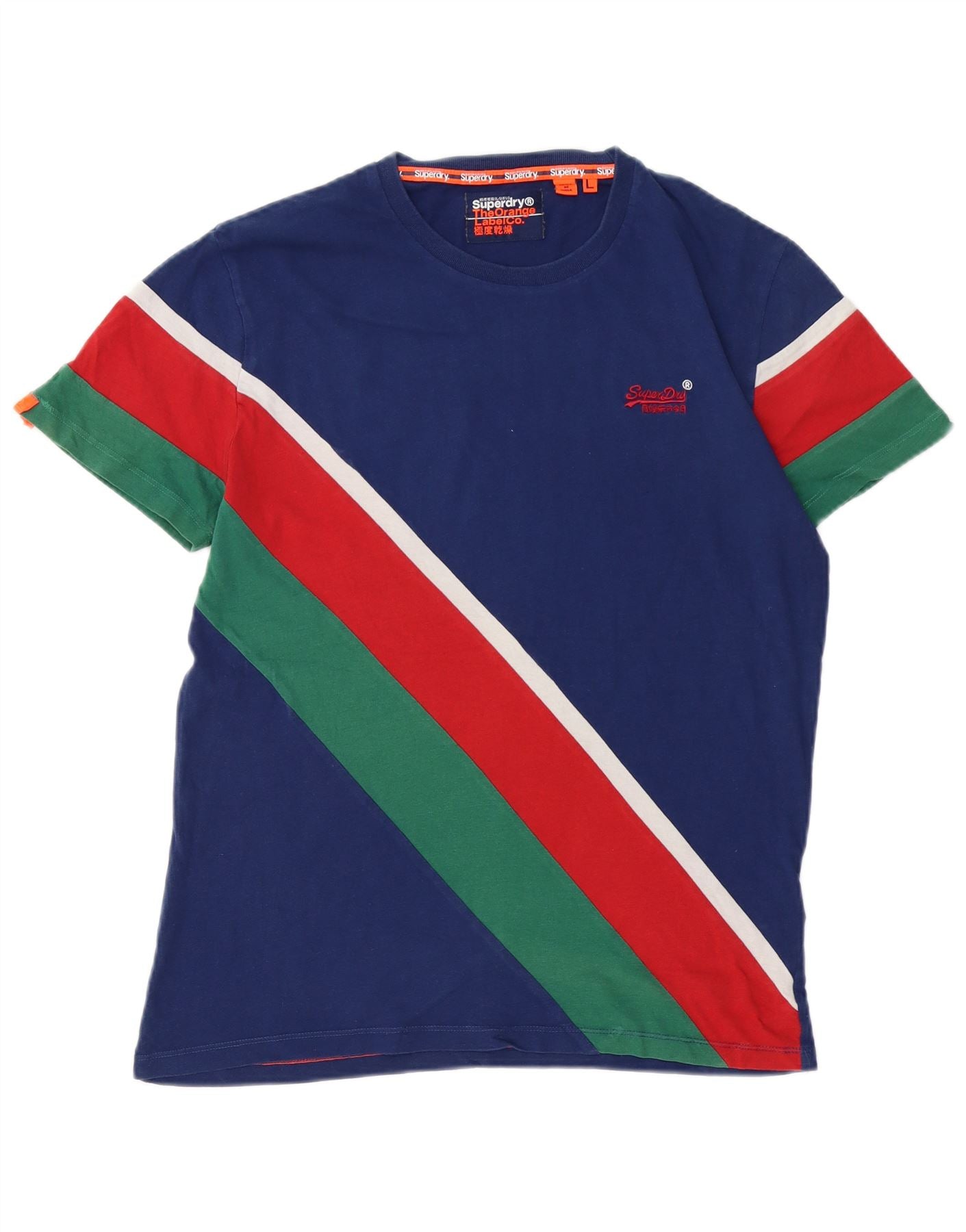 SUPERDRY Mens T-Shirt Top Large Navy Blue Colourblock Cotton