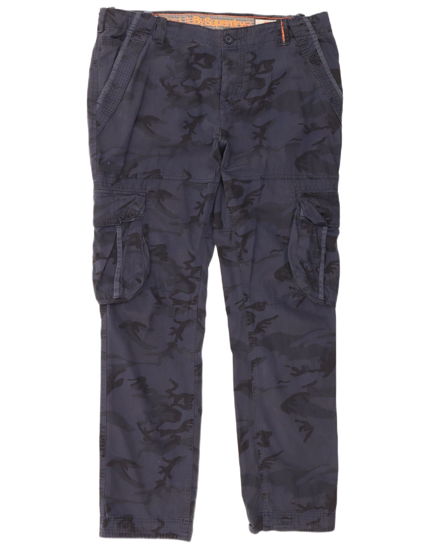 Superdry Mens Tapered Cargo Trousers Large W40 L34 Navy Blue Camouflage