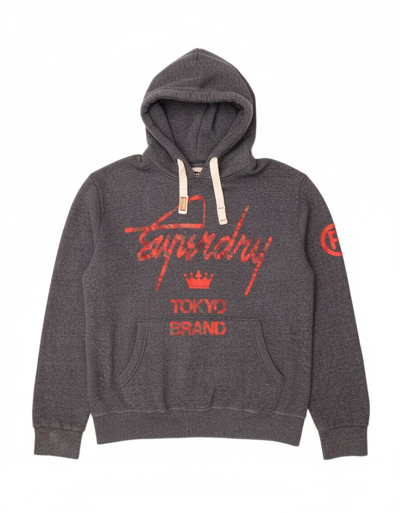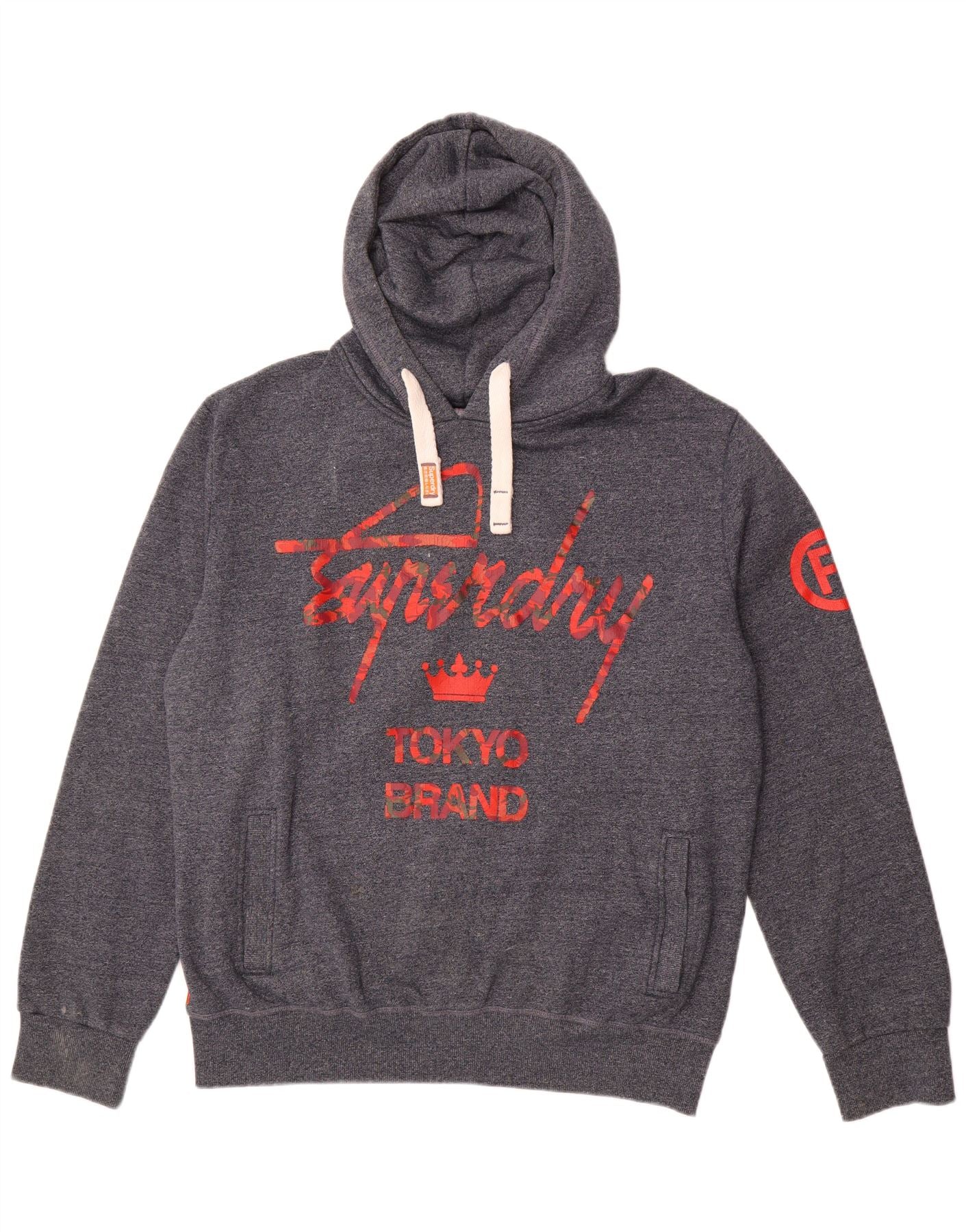SUPERDRY Mens Tokyo Graphic Hoodie Jumper 2XL Navy Blue Cotton