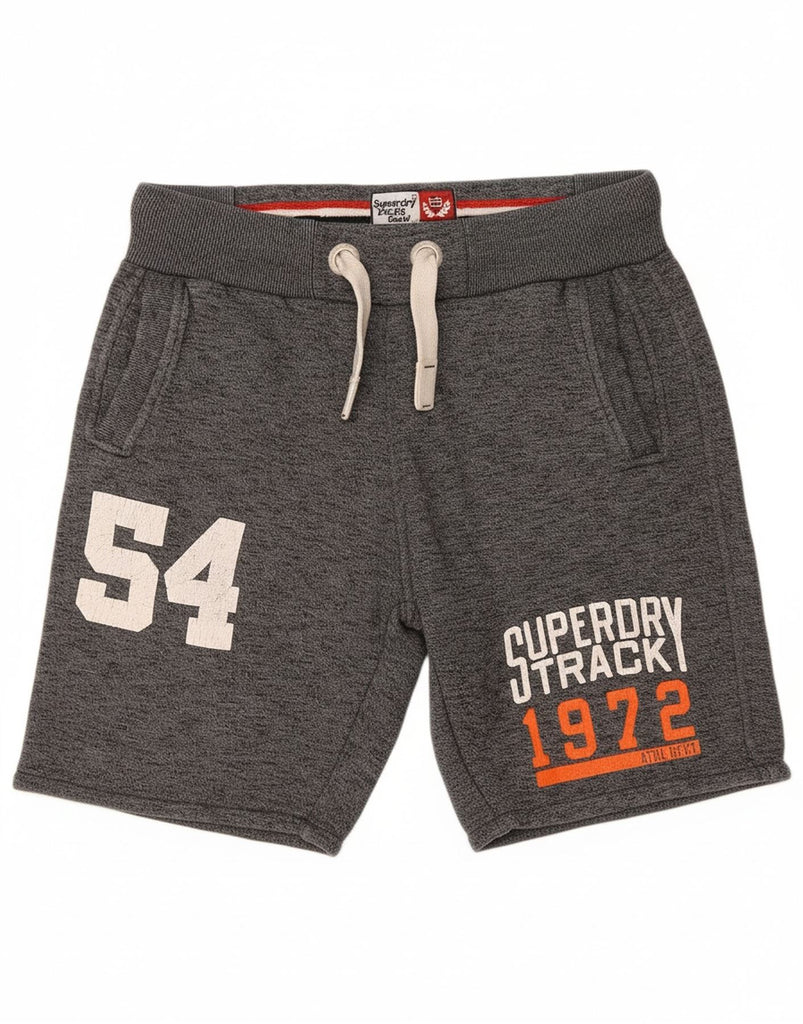 SUPERDRY Mens Track & Field Graphic Sport Shorts Small Grey Flecked