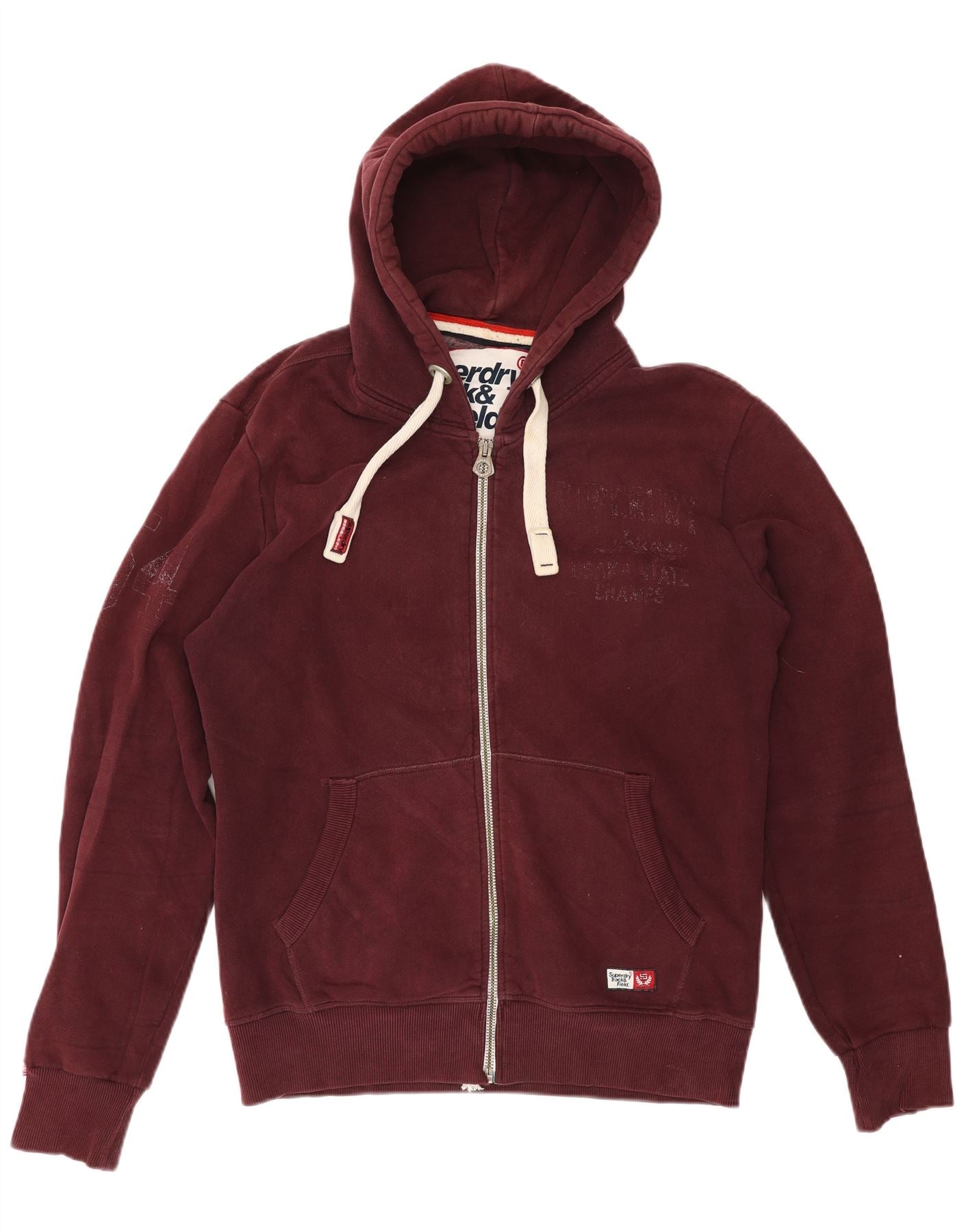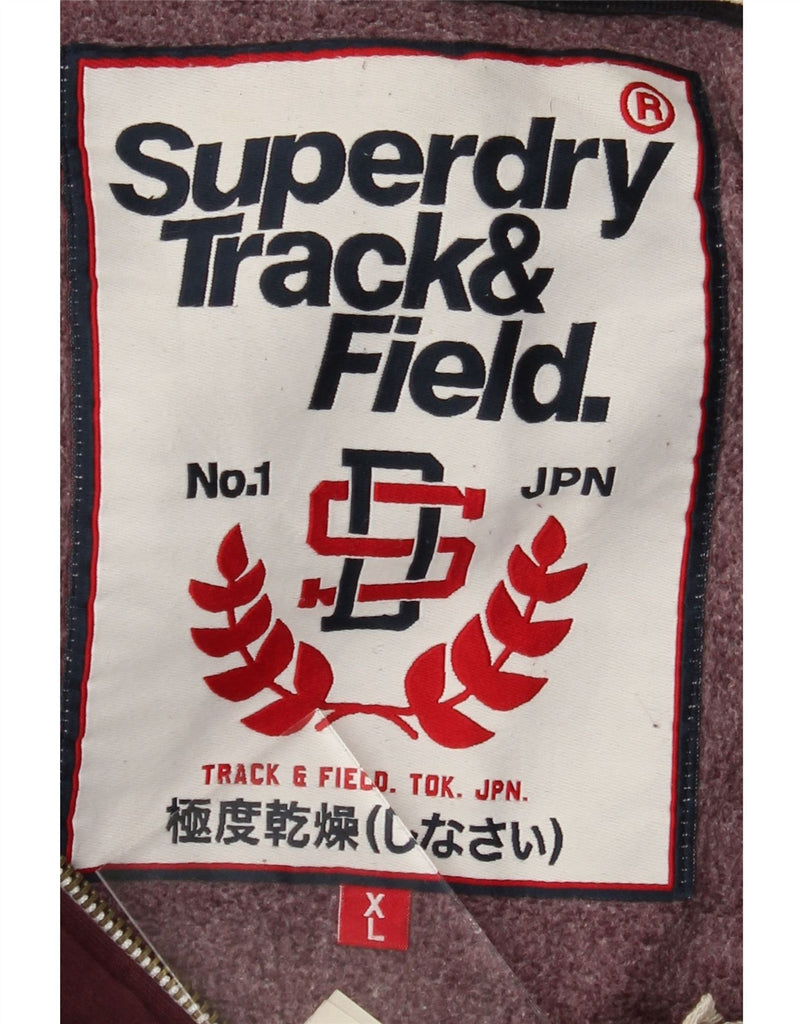 SUPERDRY Mens Track & Field Graphic Zip Hoodie Sweater XL Burgundy Cotton