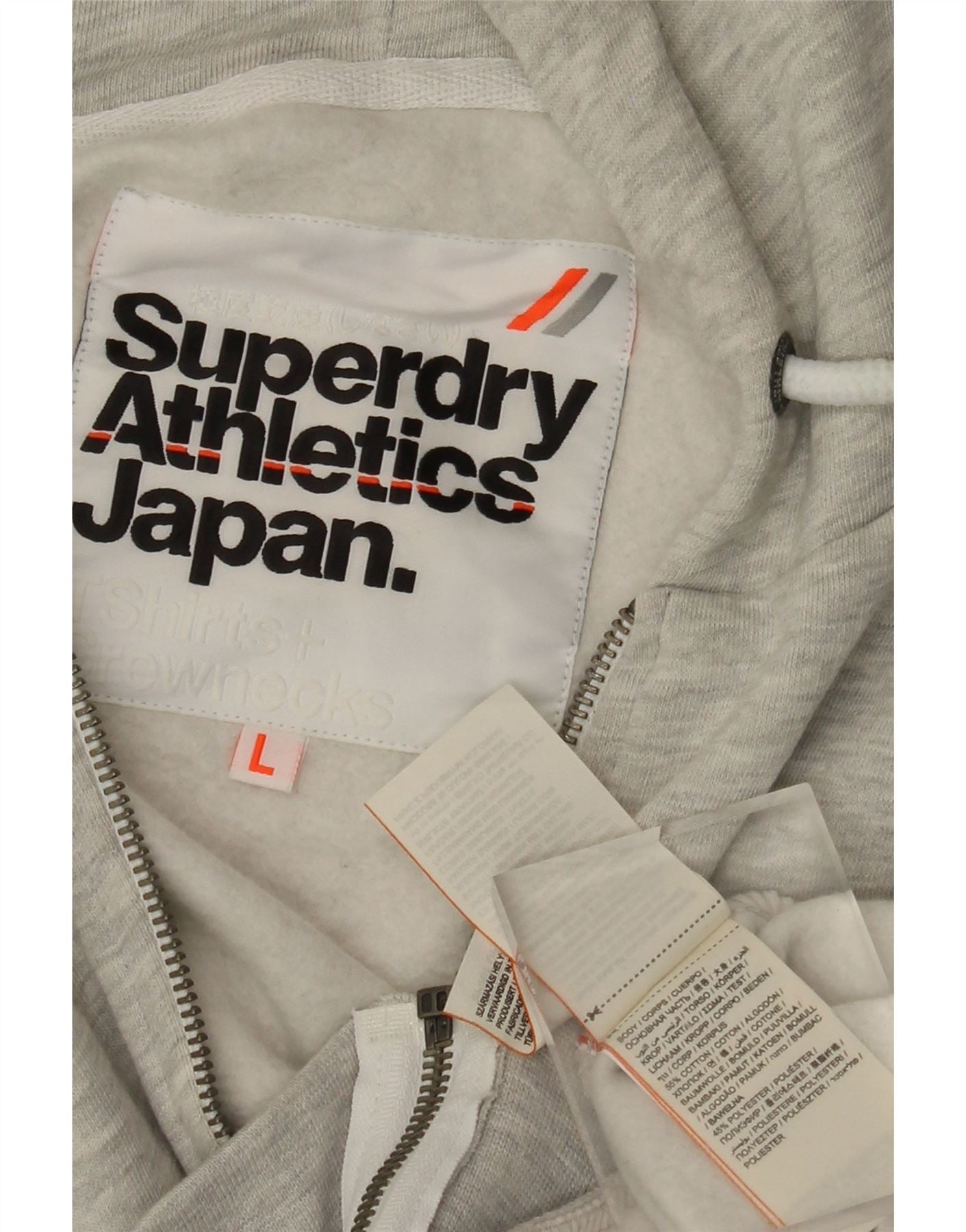 SUPERDRY Mens Zip Hoodie Sweater Large Grey Flecked Cotton