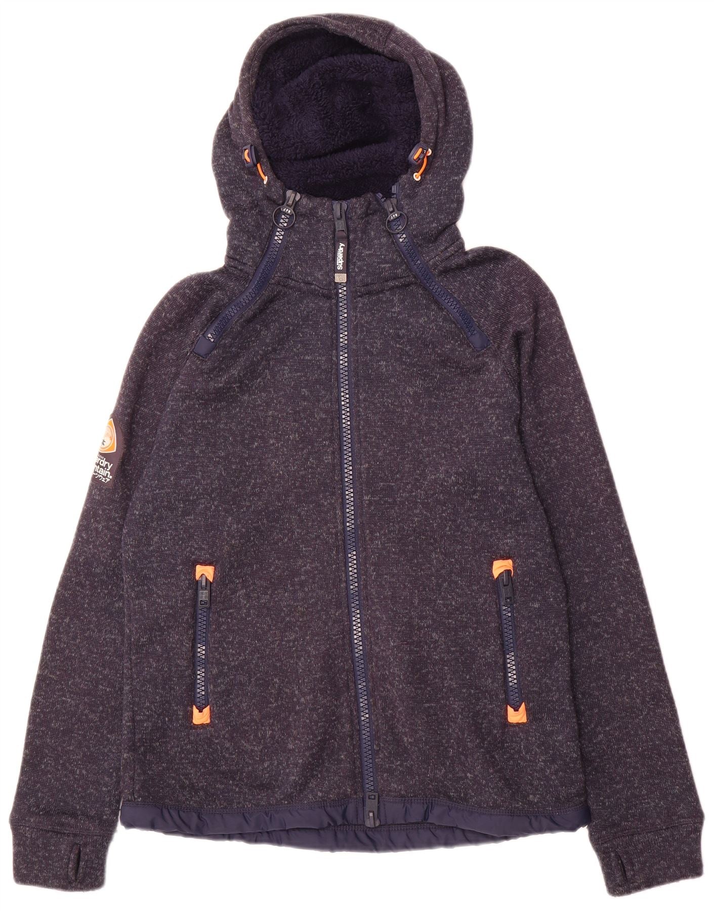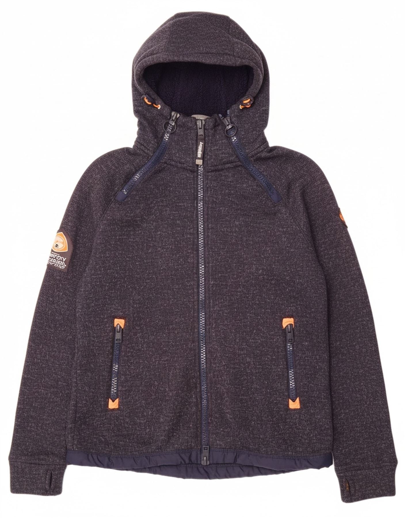 SUPERDRY Mens Zip Hoodie Sweater Medium Navy Blue Flecked Polyester