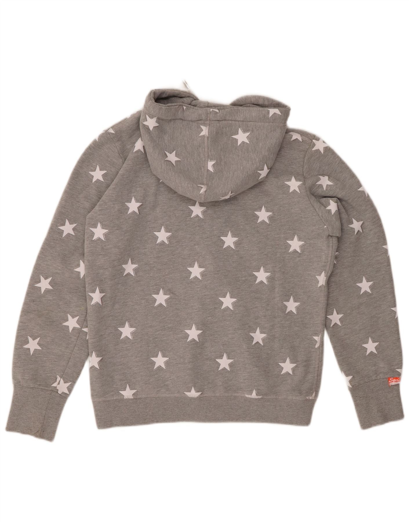 SUPERDRY Womens Abstract Pattern Zip Hoodie Sweater UK 14 Large Grey