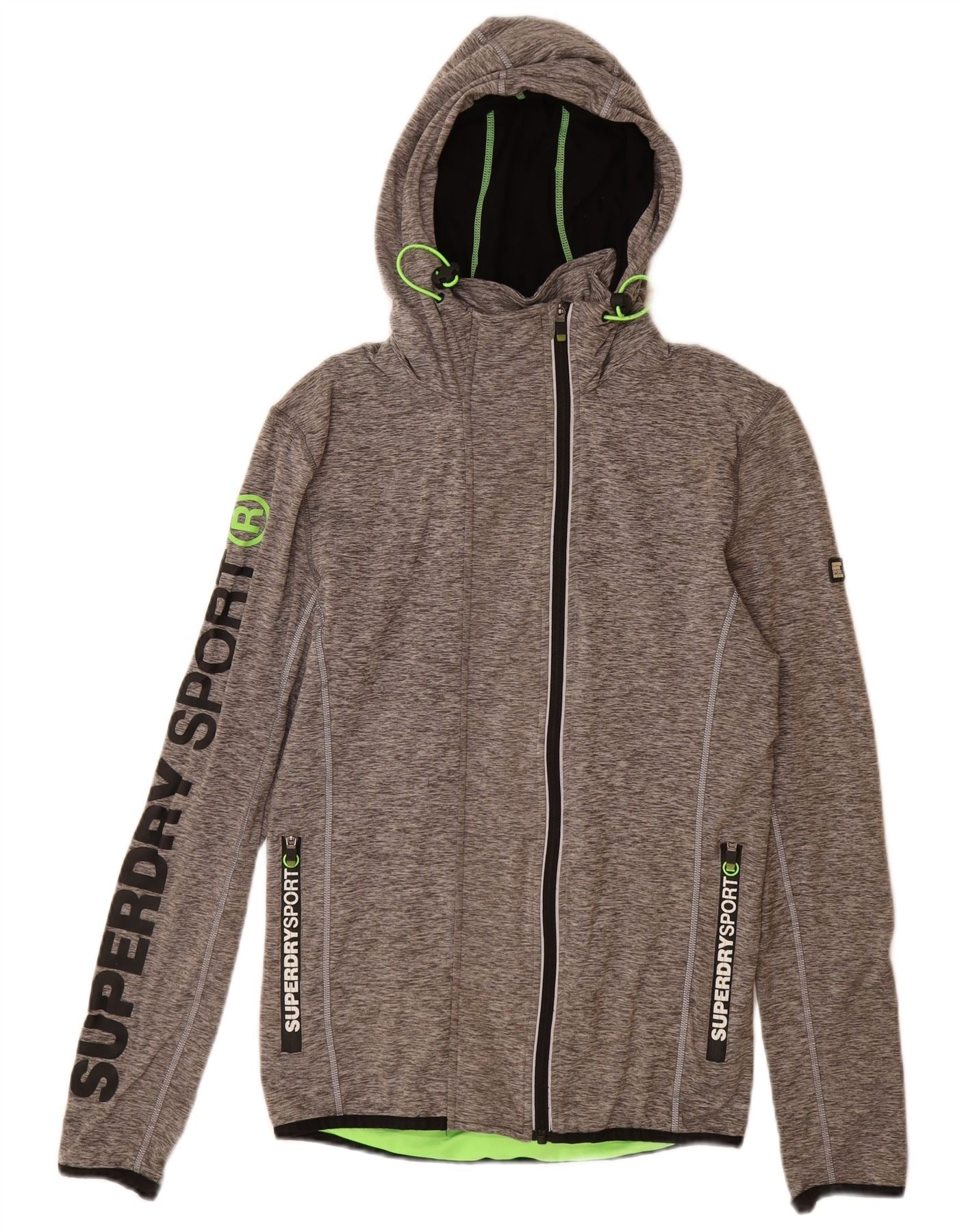 SUPERDRY Womens Athletic Fit Graphic Zip Hoodie Sweater UK 12 Medium Grey