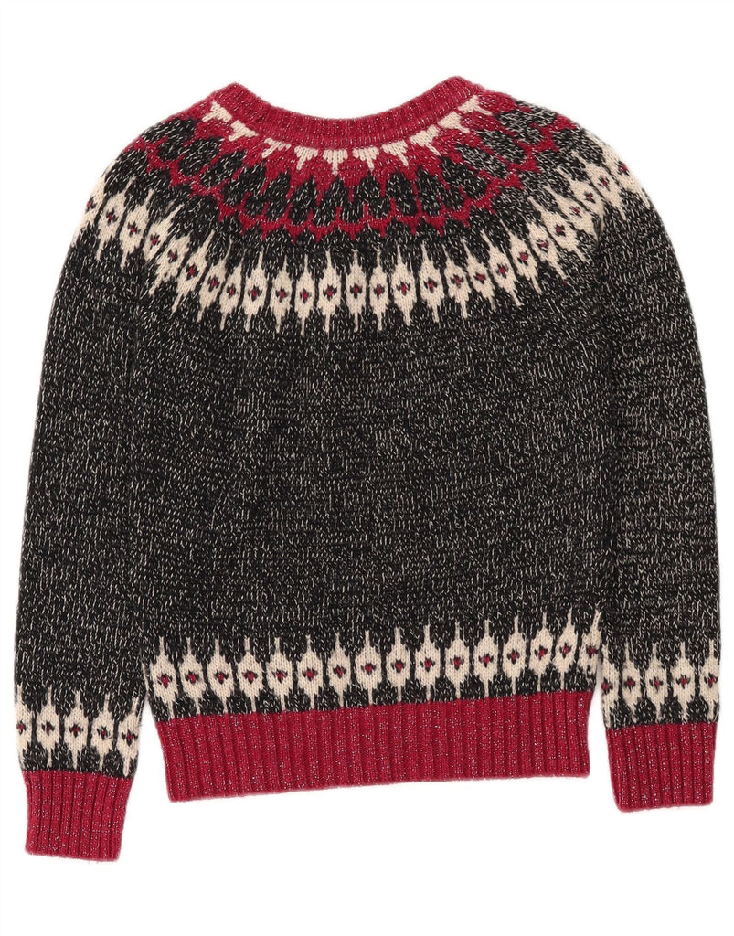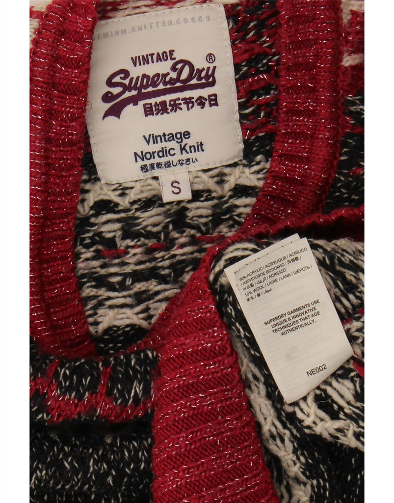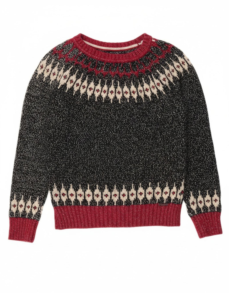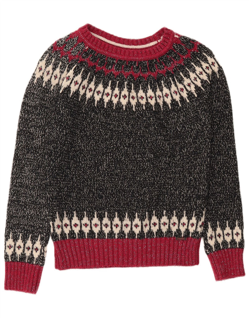 SUPERDRY Womens Boat Neck Jumper Sweater UK 10 Small Black Fair Isle