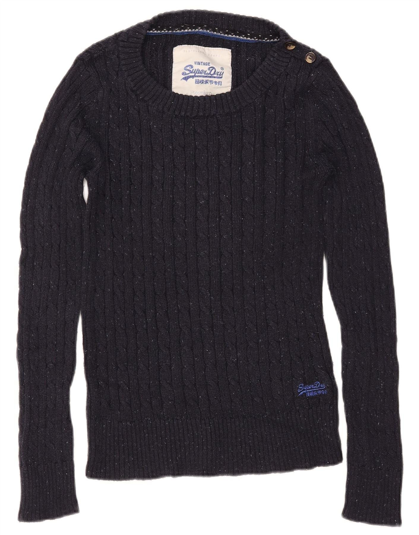 SUPERDRY Womens Boat Neck Jumper Sweater UK 12 Medium Navy Blue Cotton