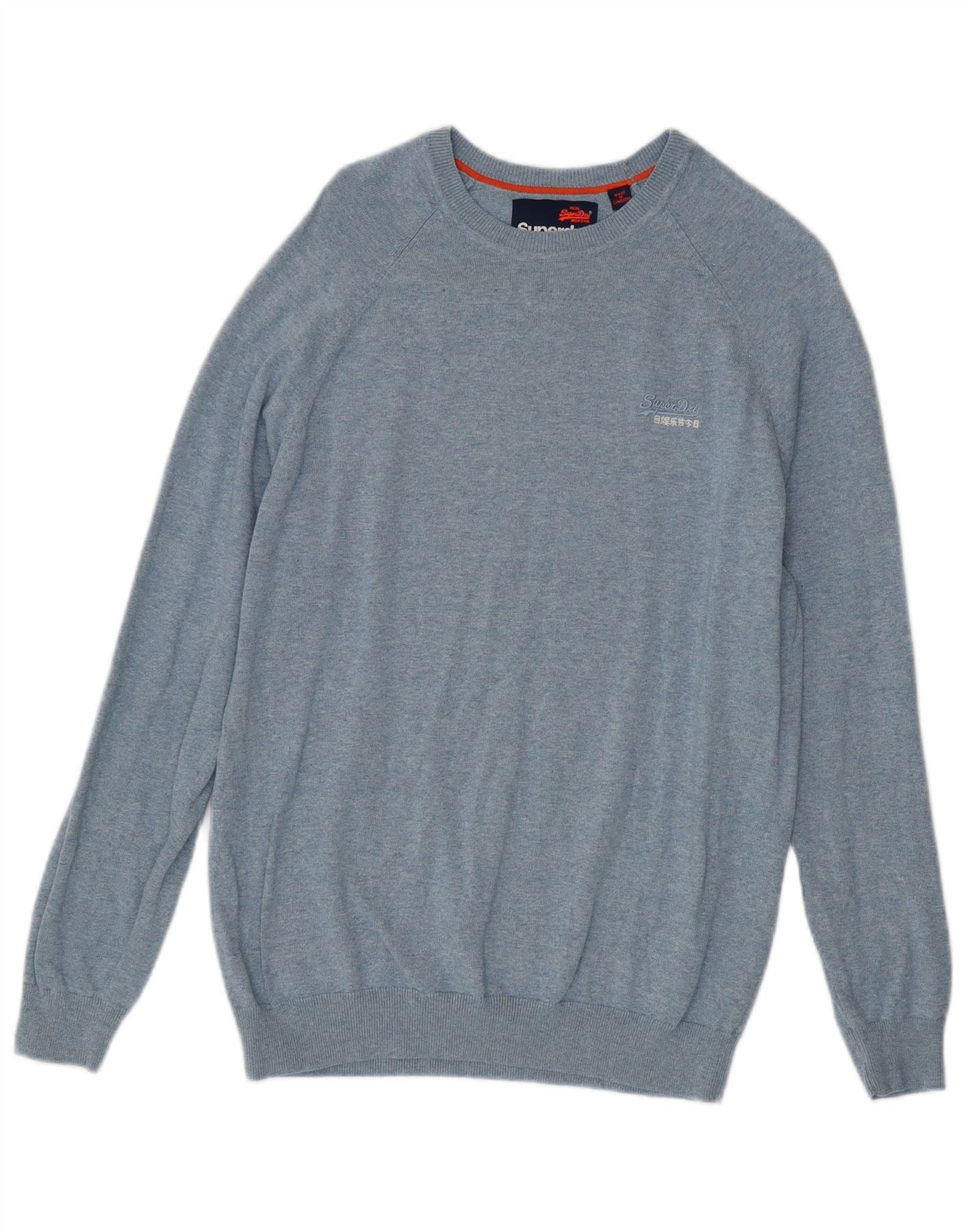 SUPERDRY Womens Boat Neck Jumper Sweater UK 18 XL Blue Flecked Cotton