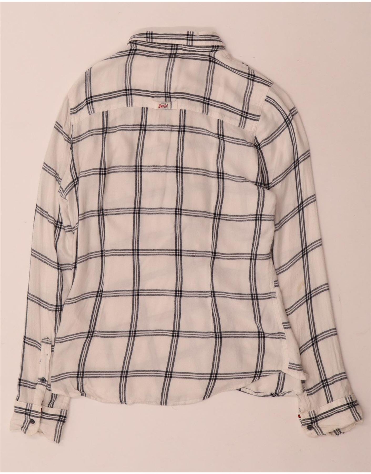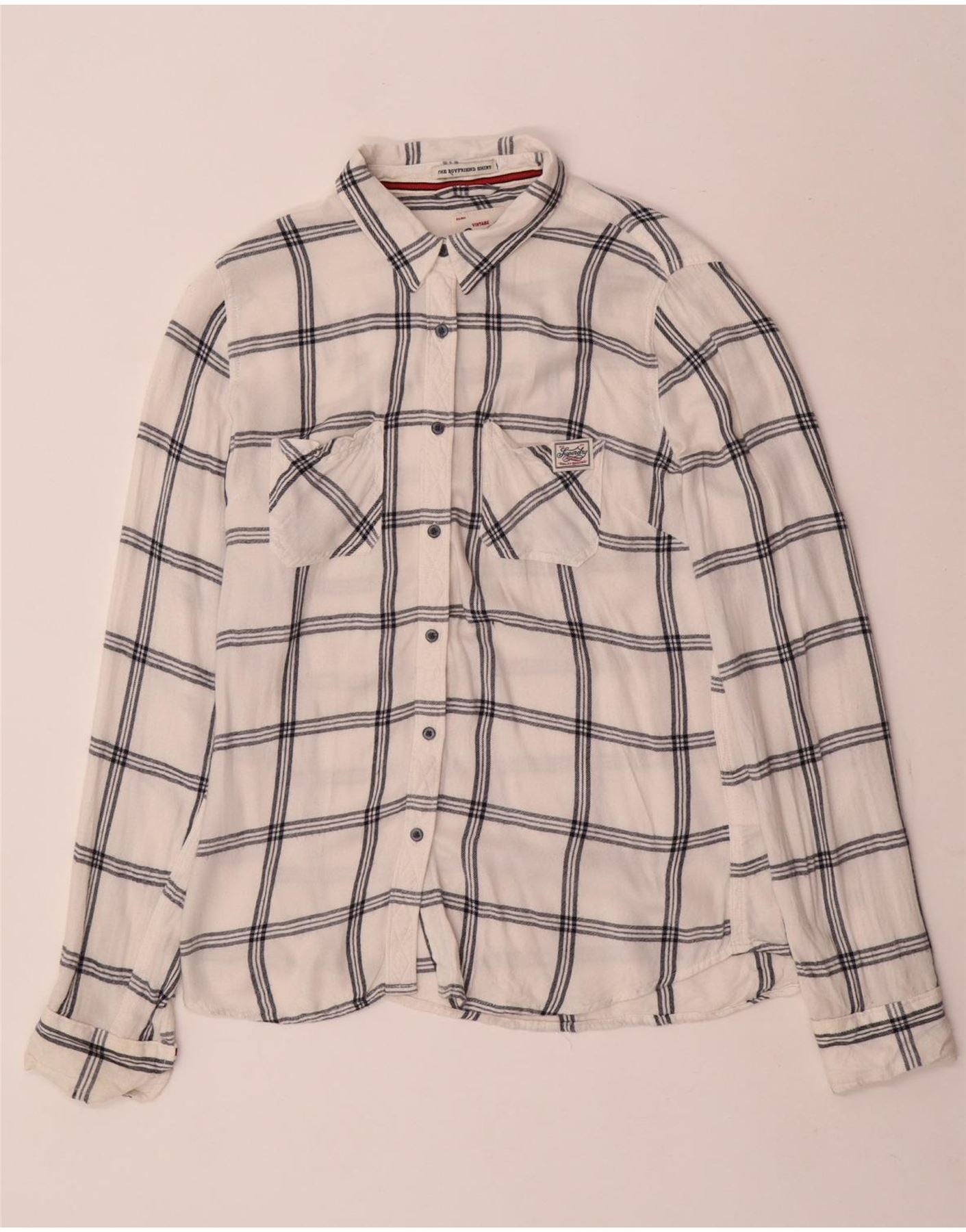 Superdry Womens Boyfriend Flannel Shirt UK 14 Medium White Check Viscose