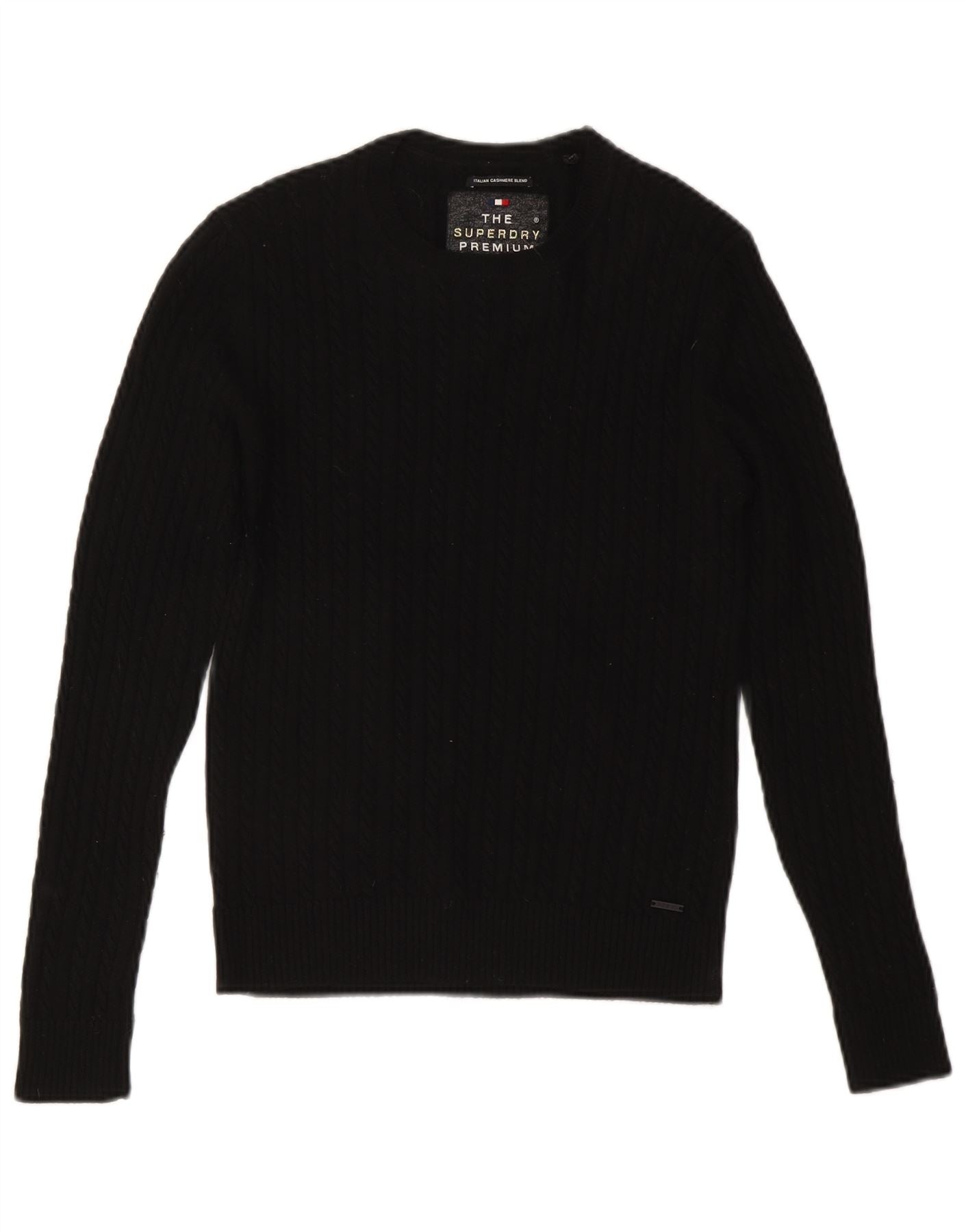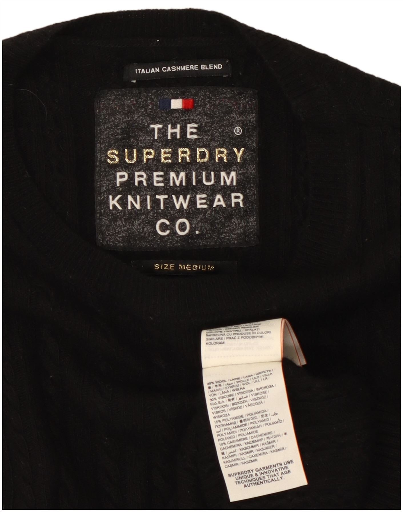 SUPERDRY Womens Crew Neck Jumper Sweater UK 12 Medium Black Wool