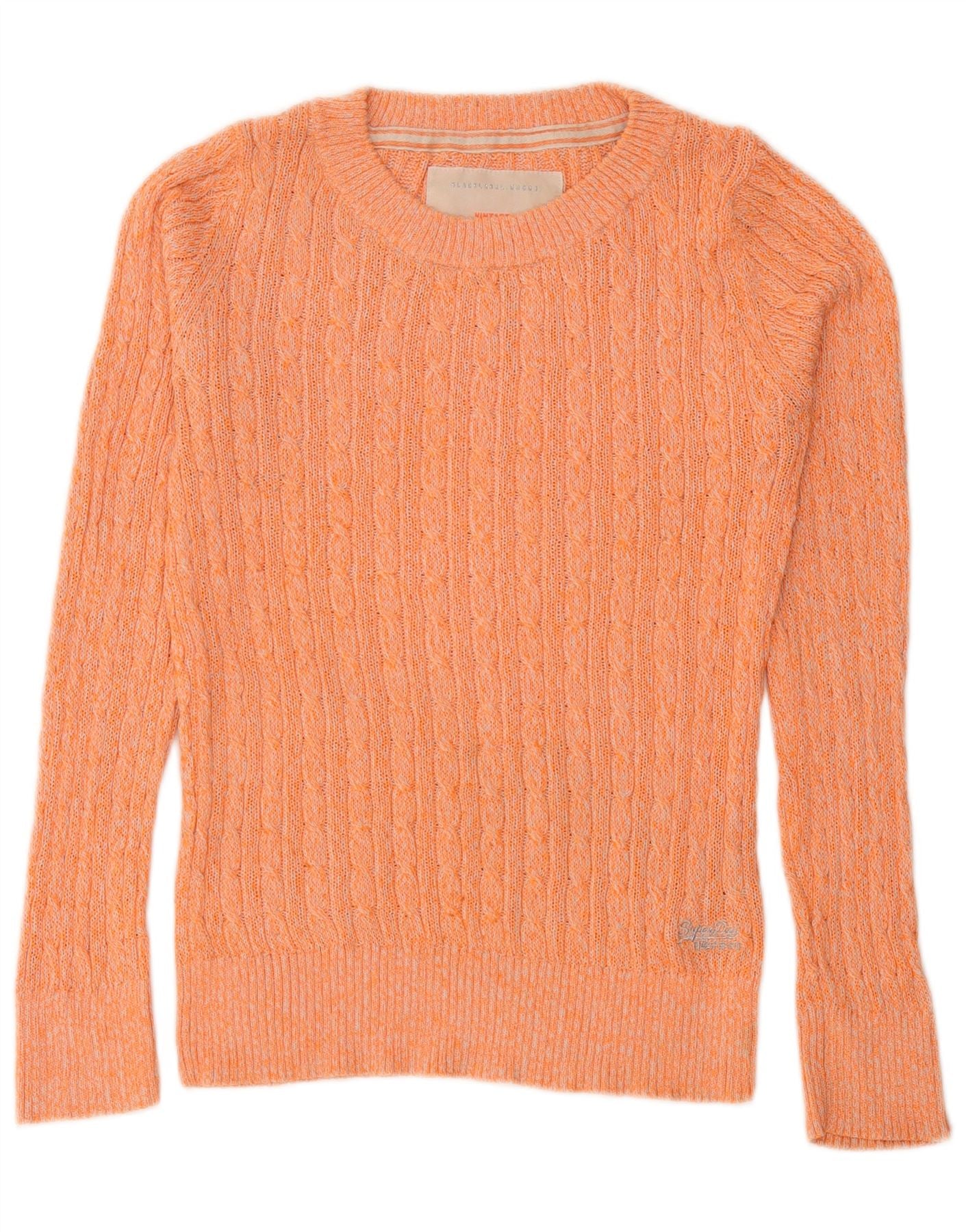 Superdry Womens Crew Neck Jumper Sweater UK 14 Large Orange Flecked Cotton