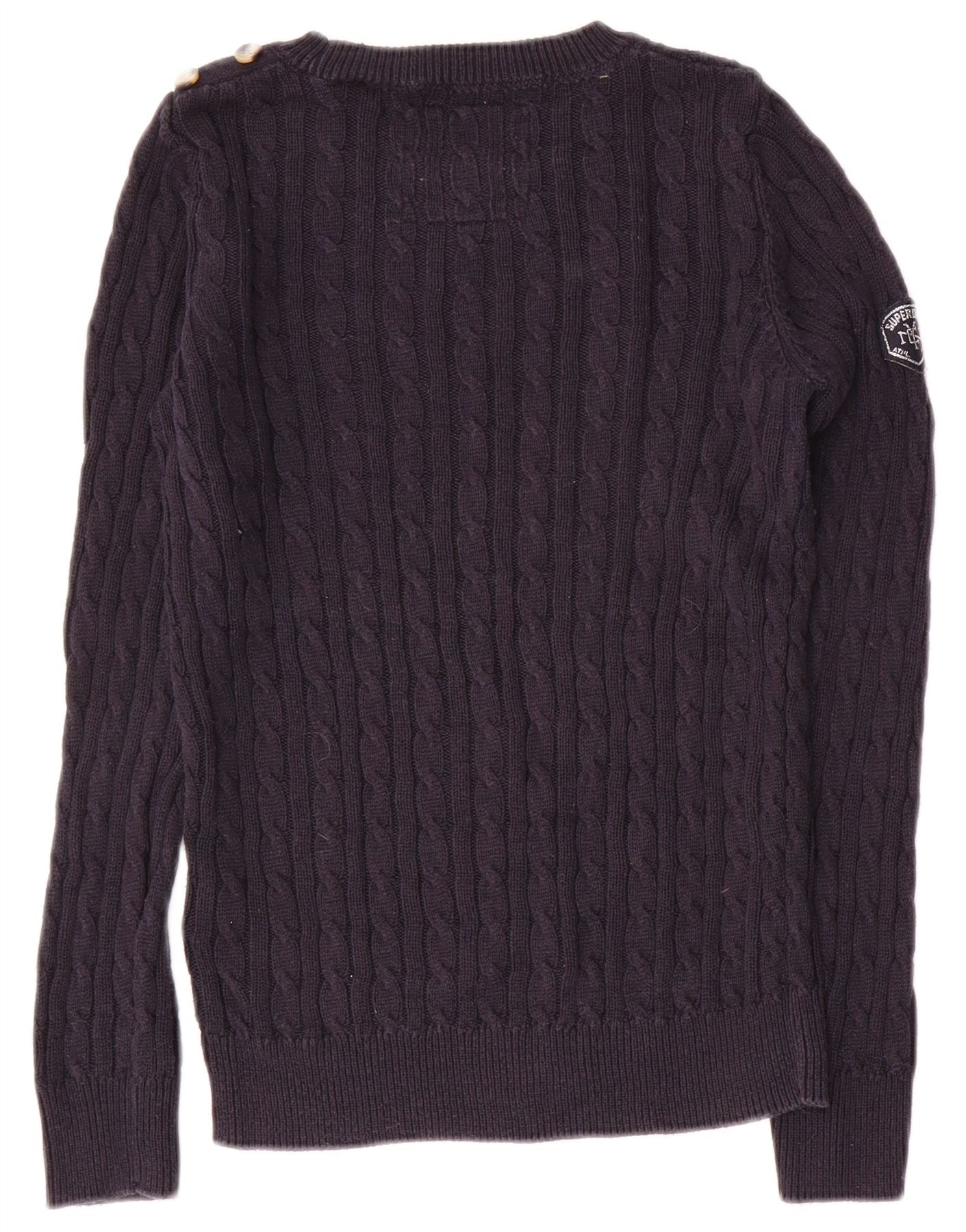 SUPERDRY Womens Crew Neck Jumper Sweater UK 8 Small Navy Blue Cotton