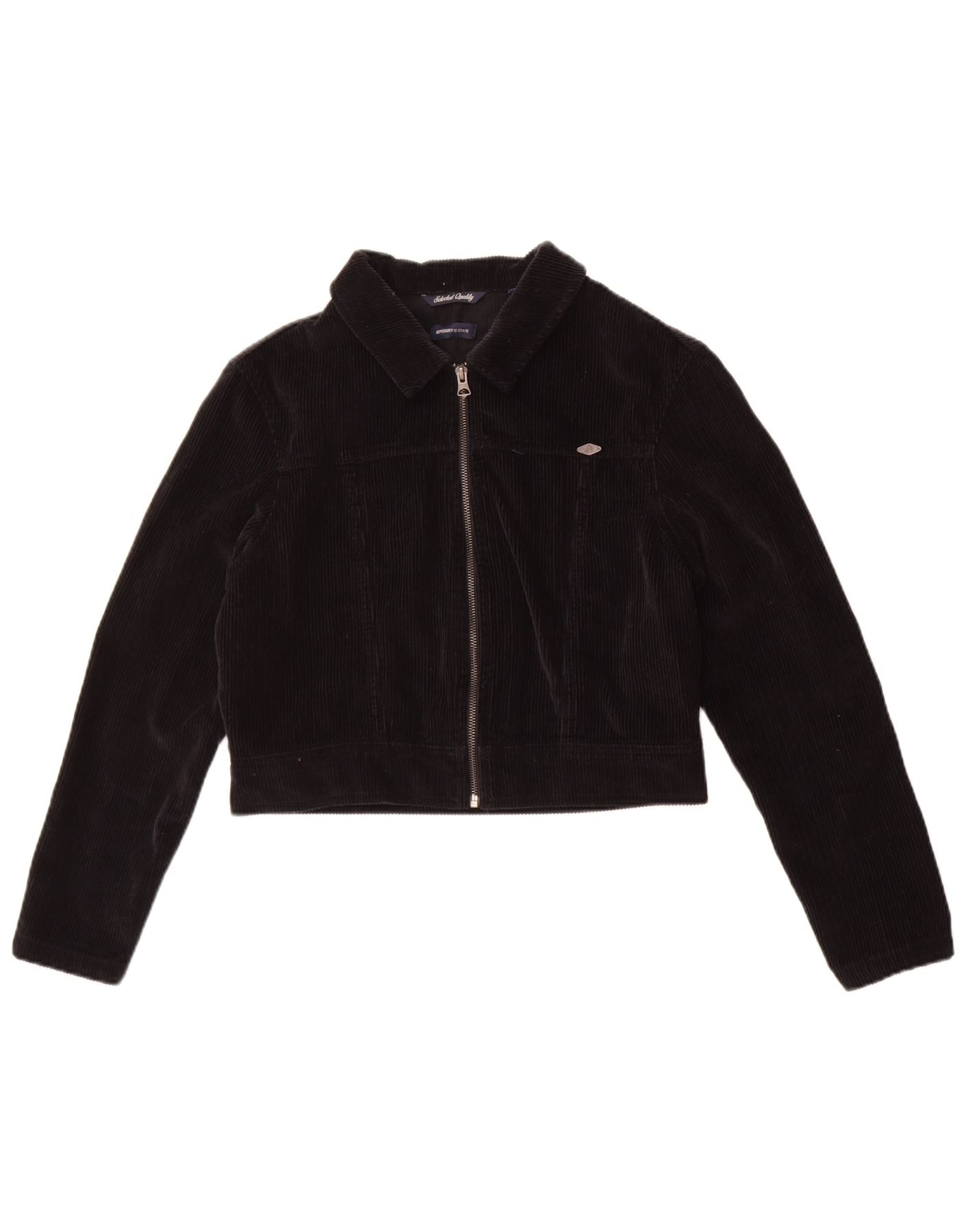 Superdry Womens Crop Corduroy Jacket UK 12 Medium Black Cotton