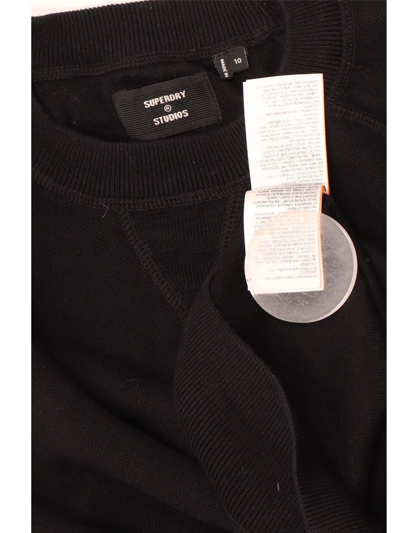 SUPERDRY Womens Crop Oversized Sweatshirt Jumper UK 10 Small Black Cotton