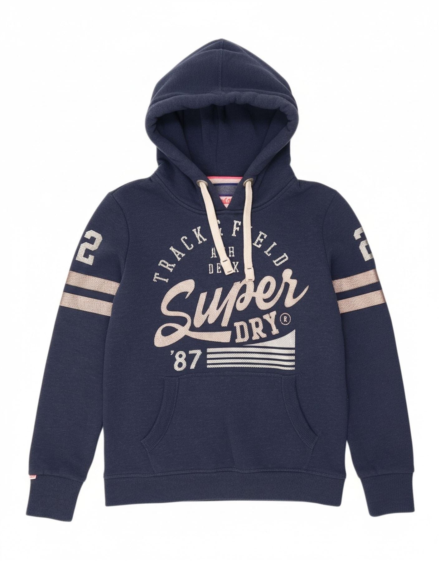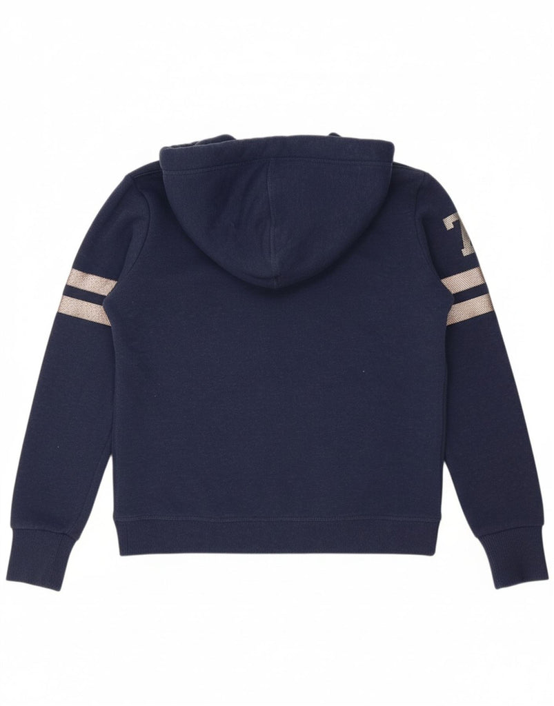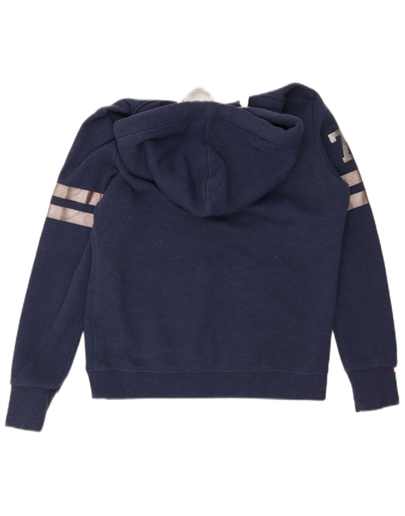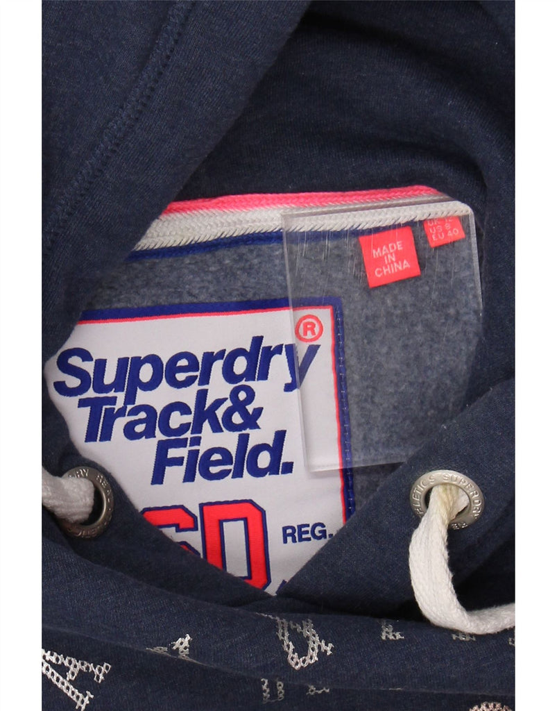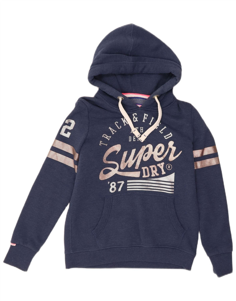 SUPERDRY Womens Graphic Hoodie Jumper UK 12 Medium Navy Blue Cotton