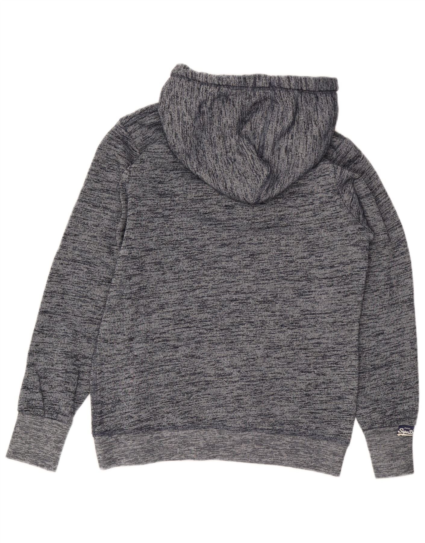 Superdry Womens Graphic Hoodie Jumper UK 12 Medium Navy Blue Flecked Cotton