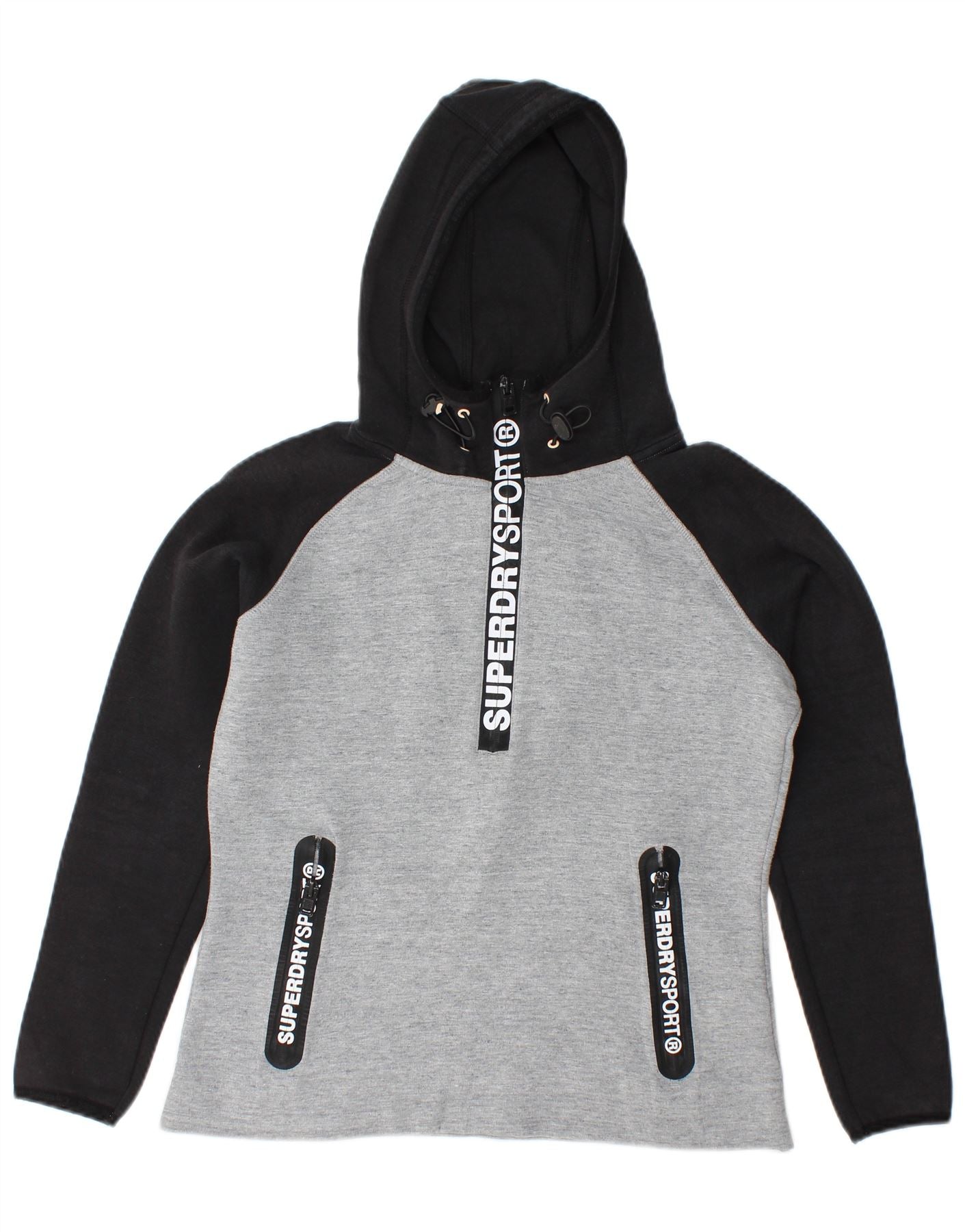 SUPERDRY Womens Graphic Hoodie Jumper UK 14 Medium Grey Colourblock