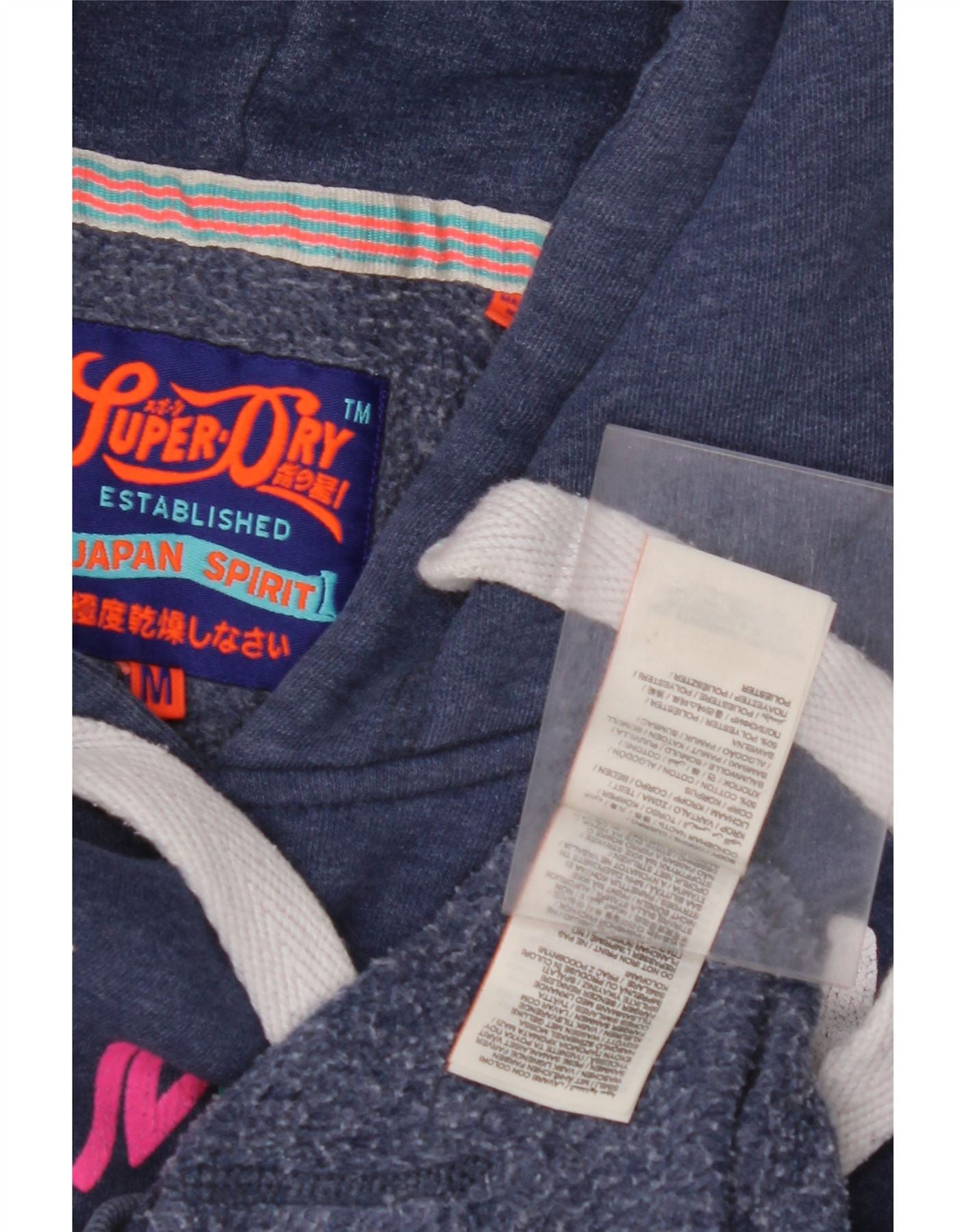 SUPERDRY Womens Graphic Hoodie Jumper UK 14 Medium Navy Blue Cotton