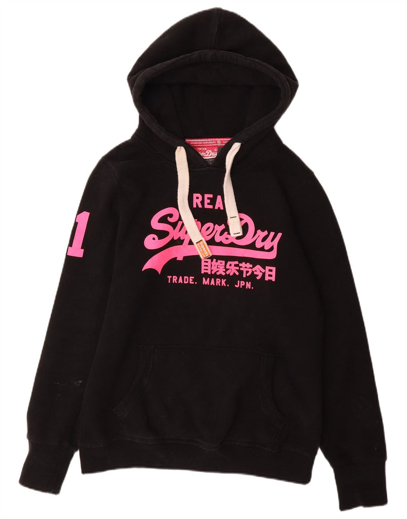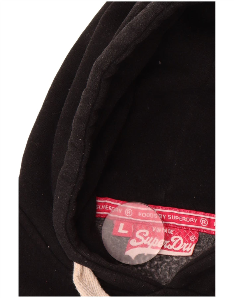 SUPERDRY Womens Graphic Hoodie Jumper UK 16 Large Black Cotton