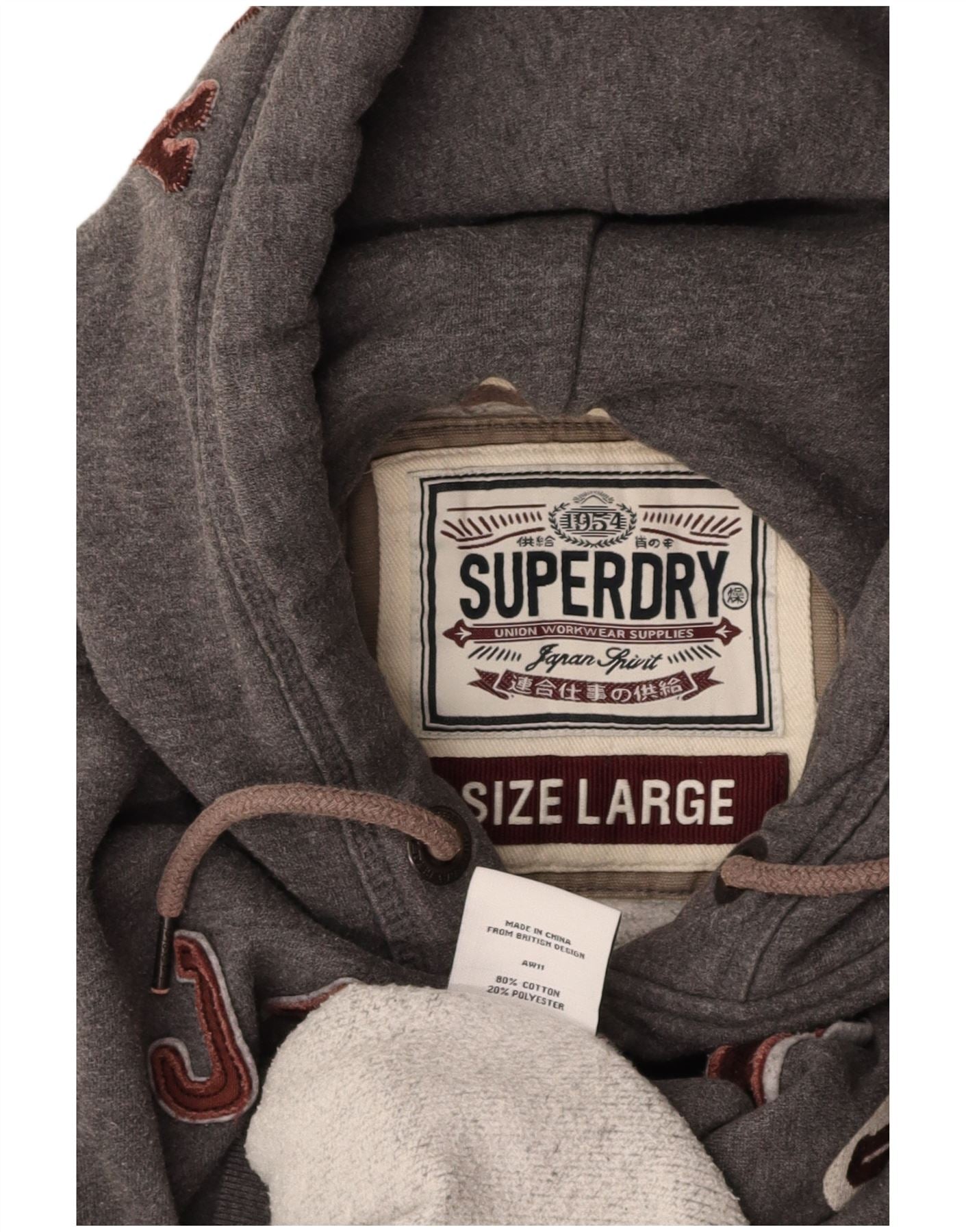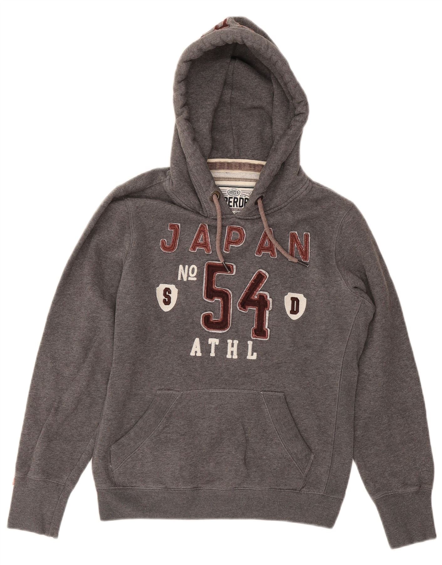 SUPERDRY Womens Graphic Hoodie Jumper UK 16 Large Grey Cotton