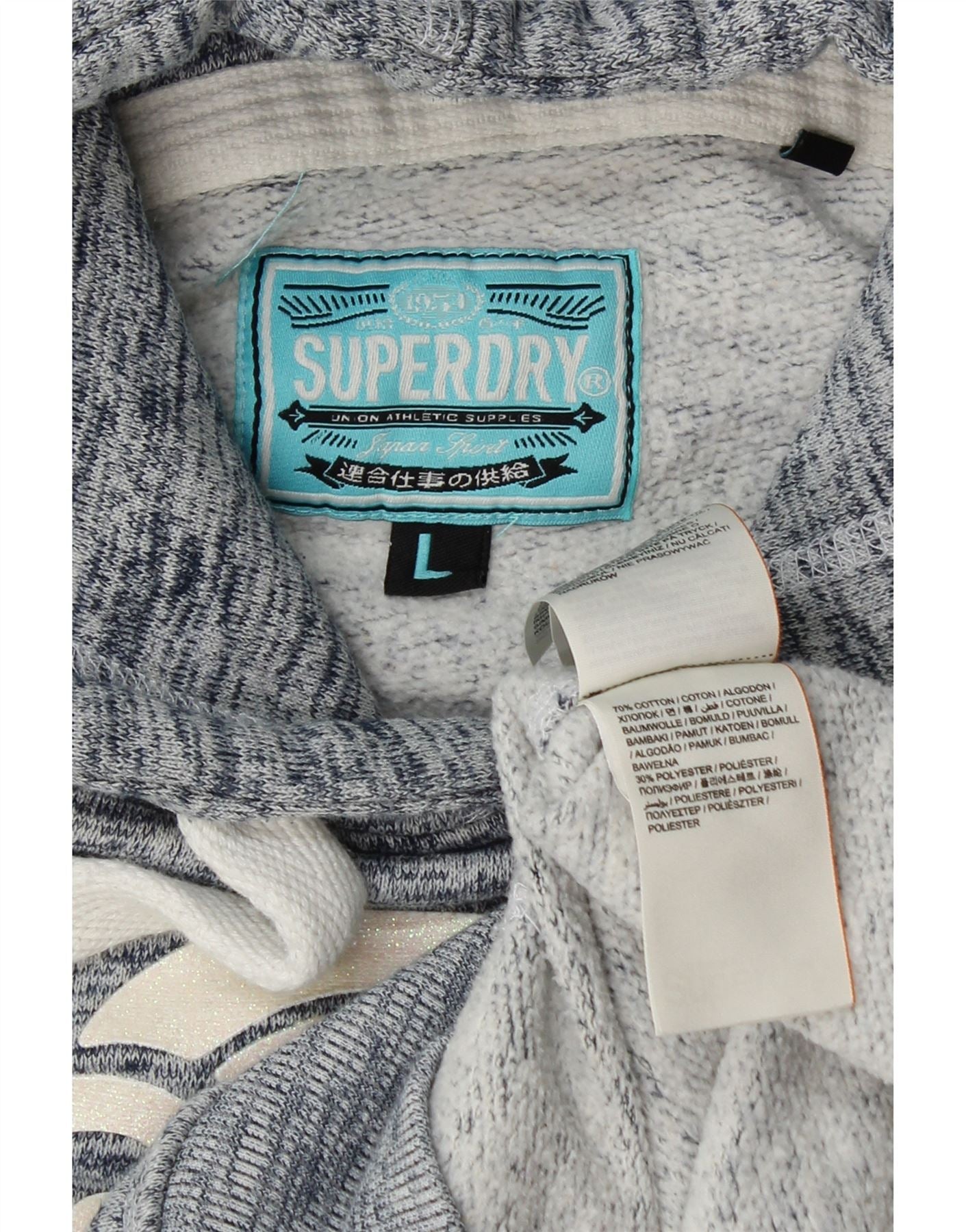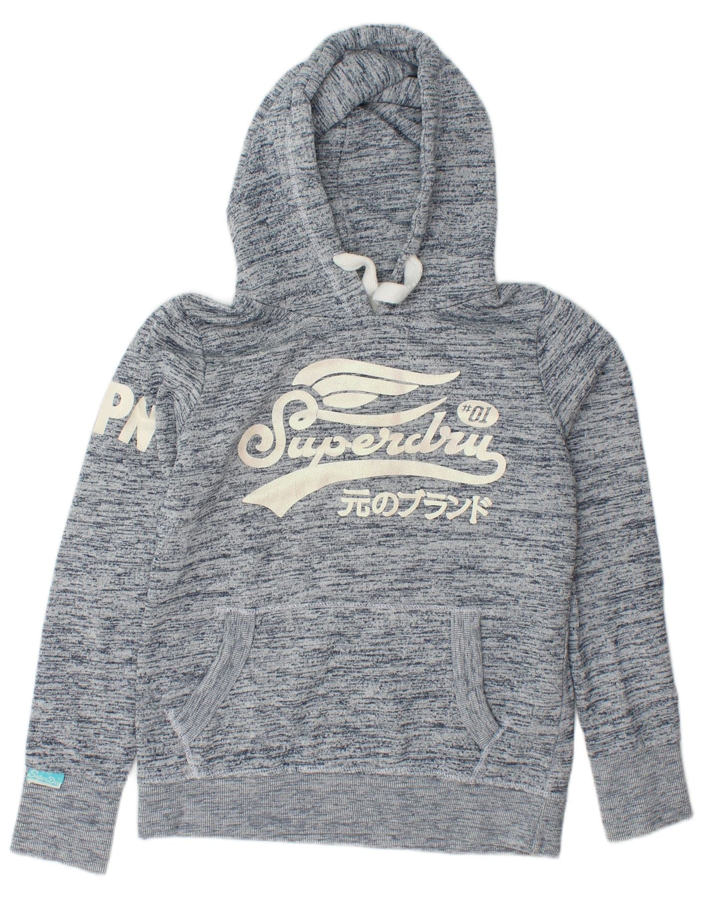 SUPERDRY Womens Graphic Hoodie Jumper UK 16 Large Navy Blue Flecked Cotton