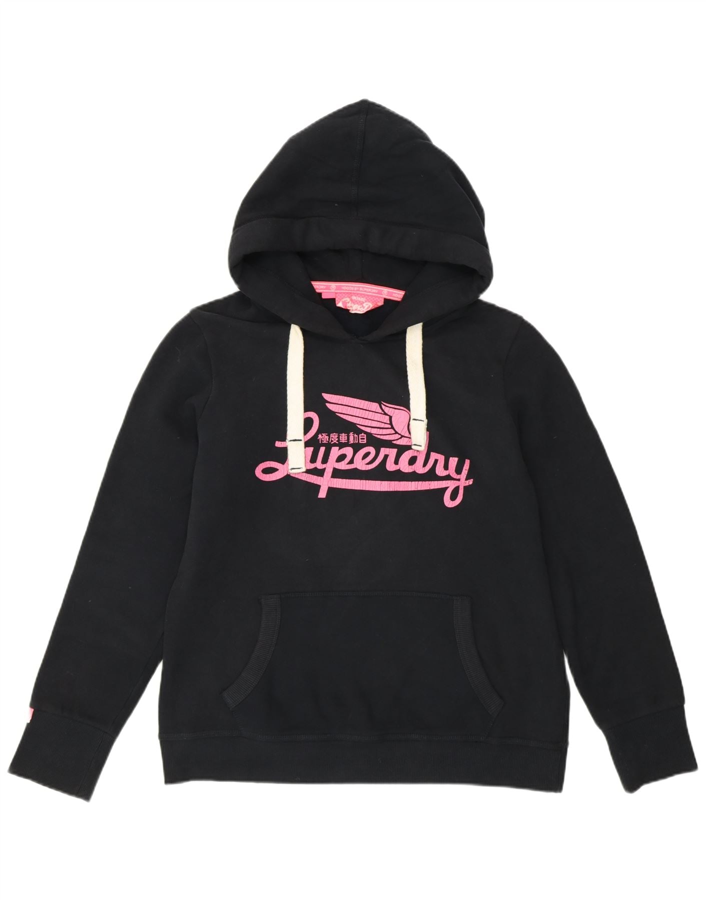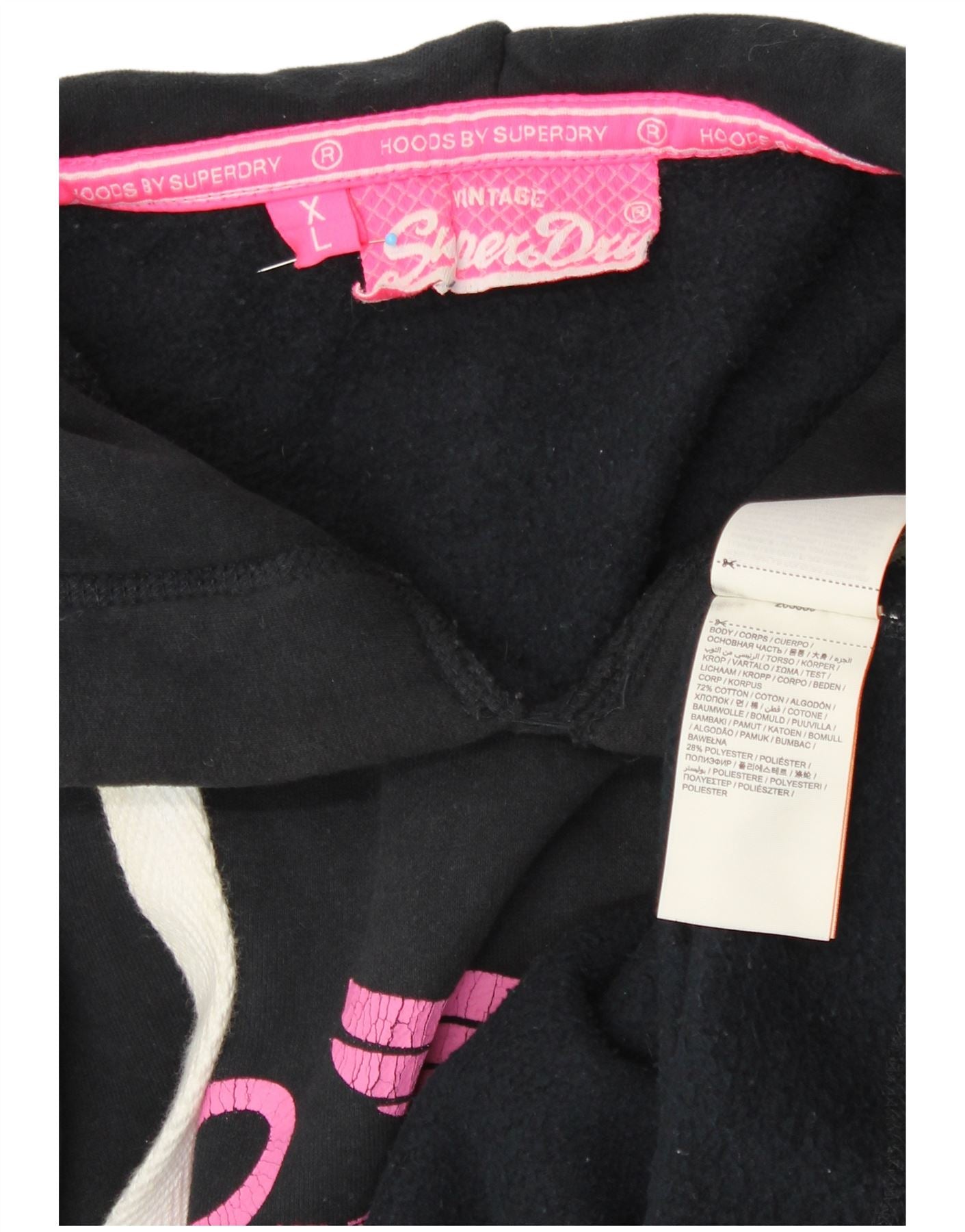 SUPERDRY Womens Graphic Hoodie Jumper UK 18 XL Black Cotton