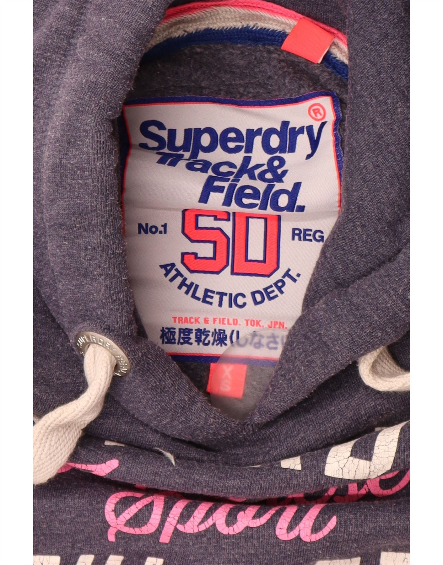 SUPERDRY Womens Graphic Hoodie Jumper UK 6 XS Navy Blue Cotton