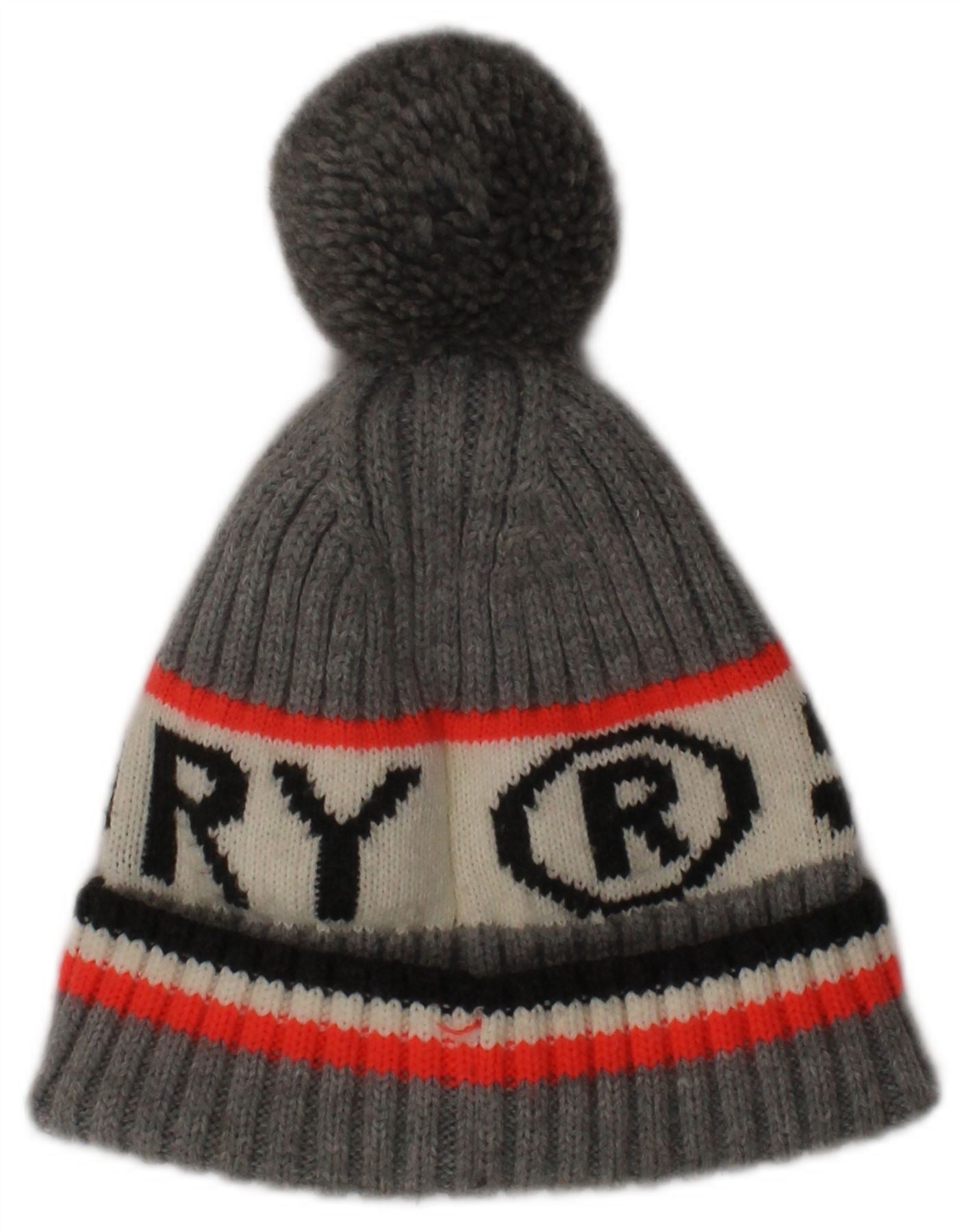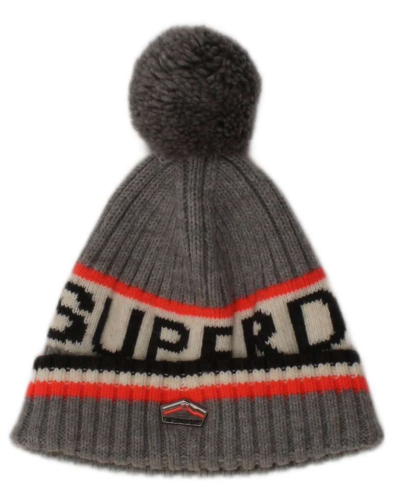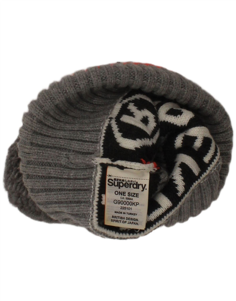 SUPERDRY Womens Graphic Knit Bobble Hat One Size Grey Striped Winter