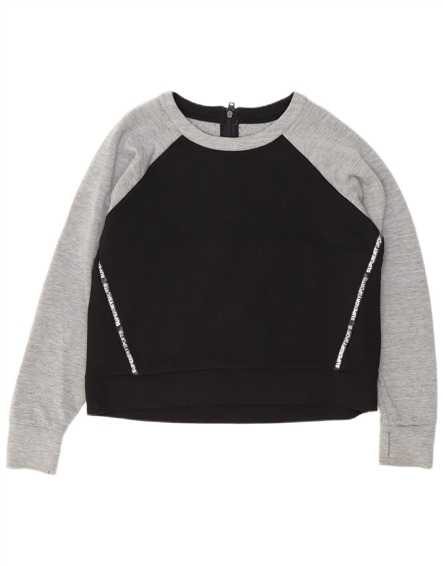 Superdry Womens Graphic Sweatshirt Jumper UK 16 Large Black Colourblock