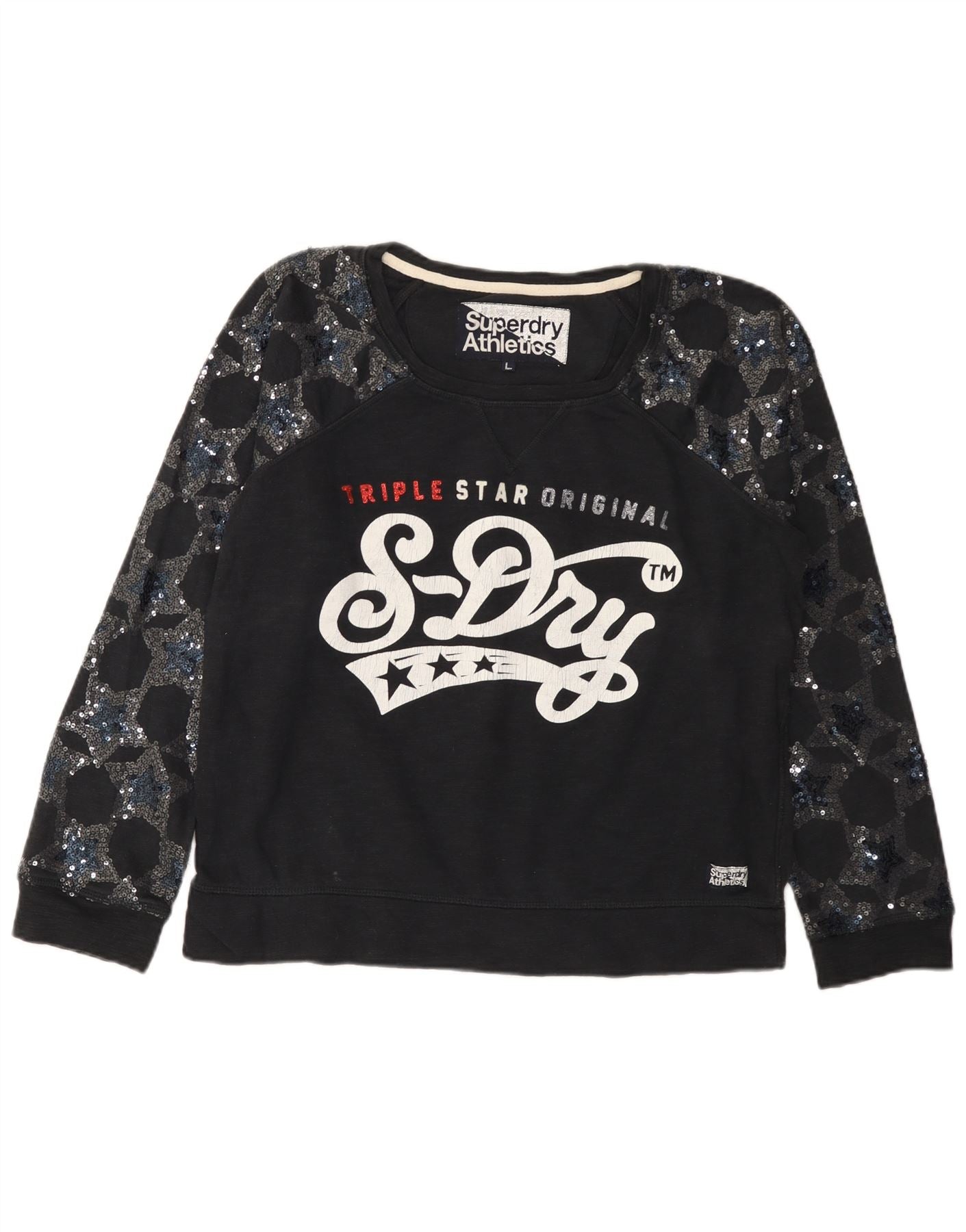 SUPERDRY Womens Graphic Sweatshirt Jumper UK 16 Large Black Cotton